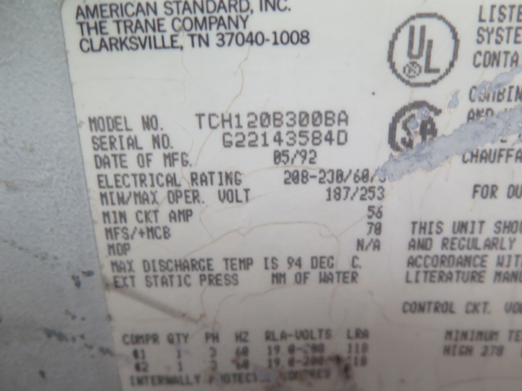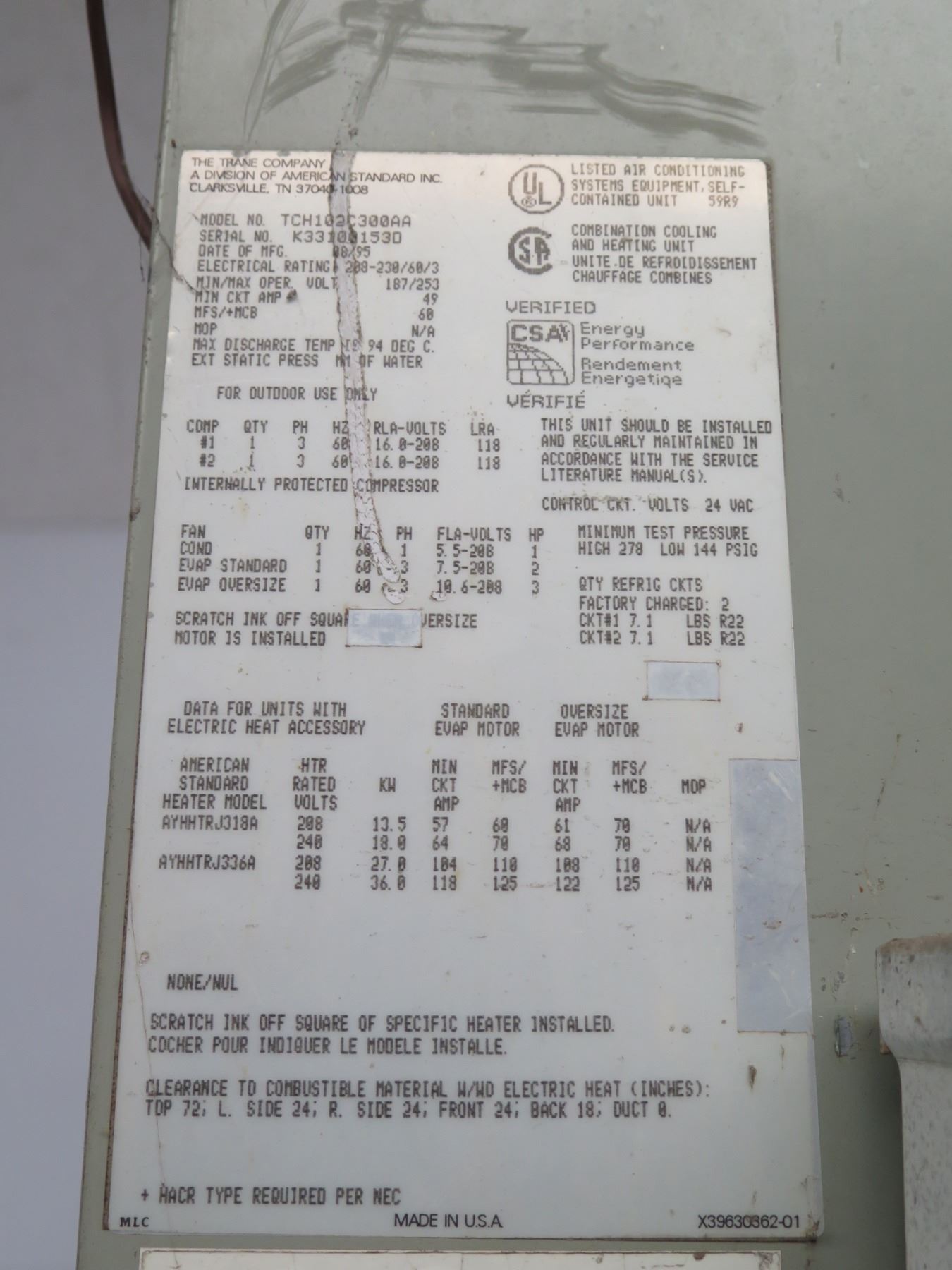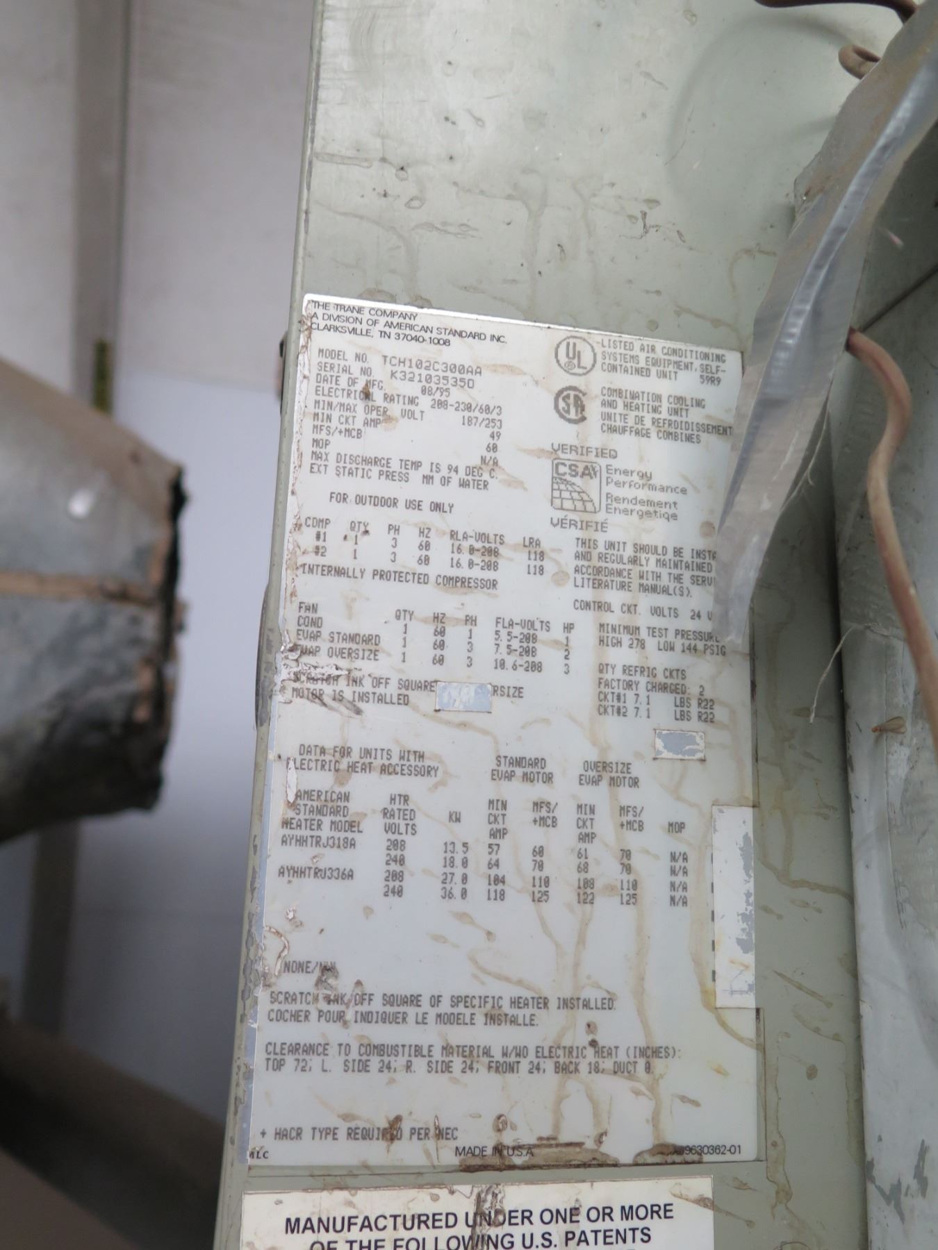 Qty 4 Trane Industrial Air Conditioner Units (untested, sold as is)