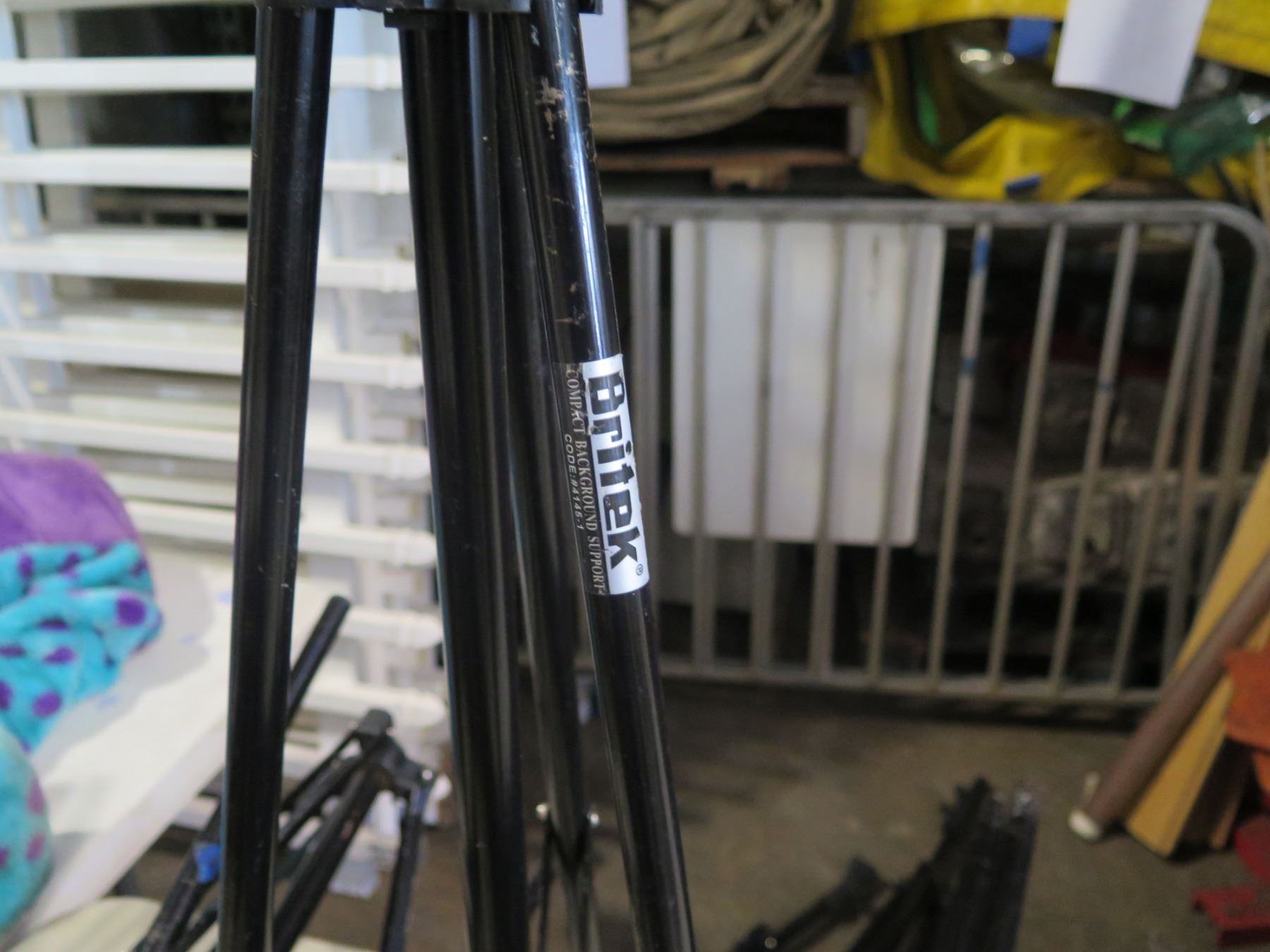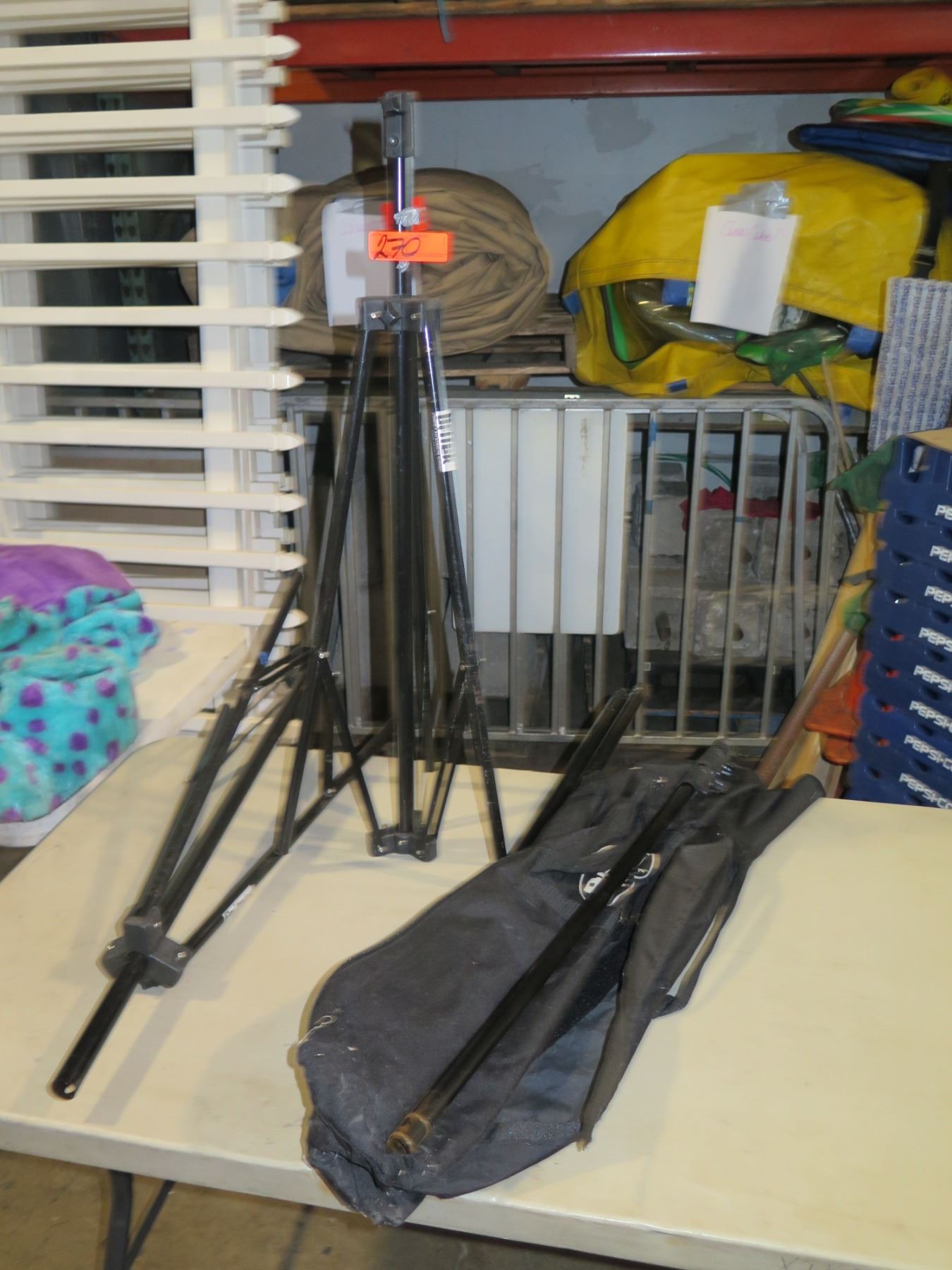 Tripods for holding lighting, props or green screen. Tip of each tripod is broken. Needs to have new ones ordered.