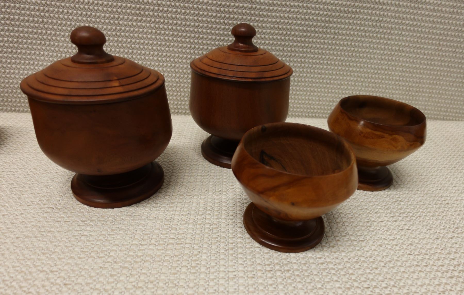 Qty 4 Turned Koa Wood Umeke Bowls w/ Some Lids, Misc Sizes