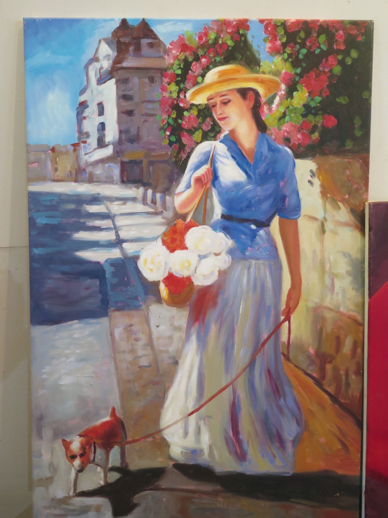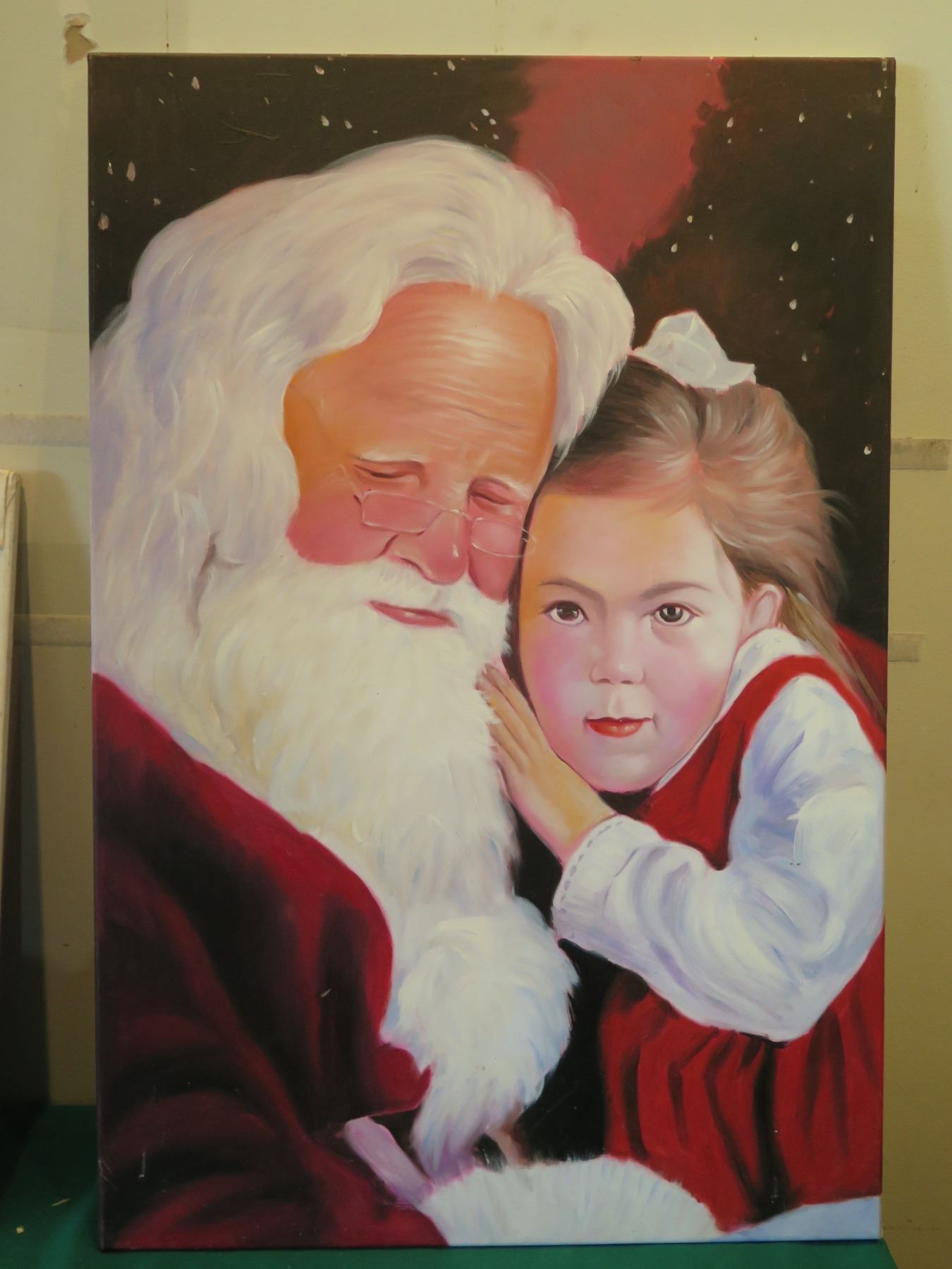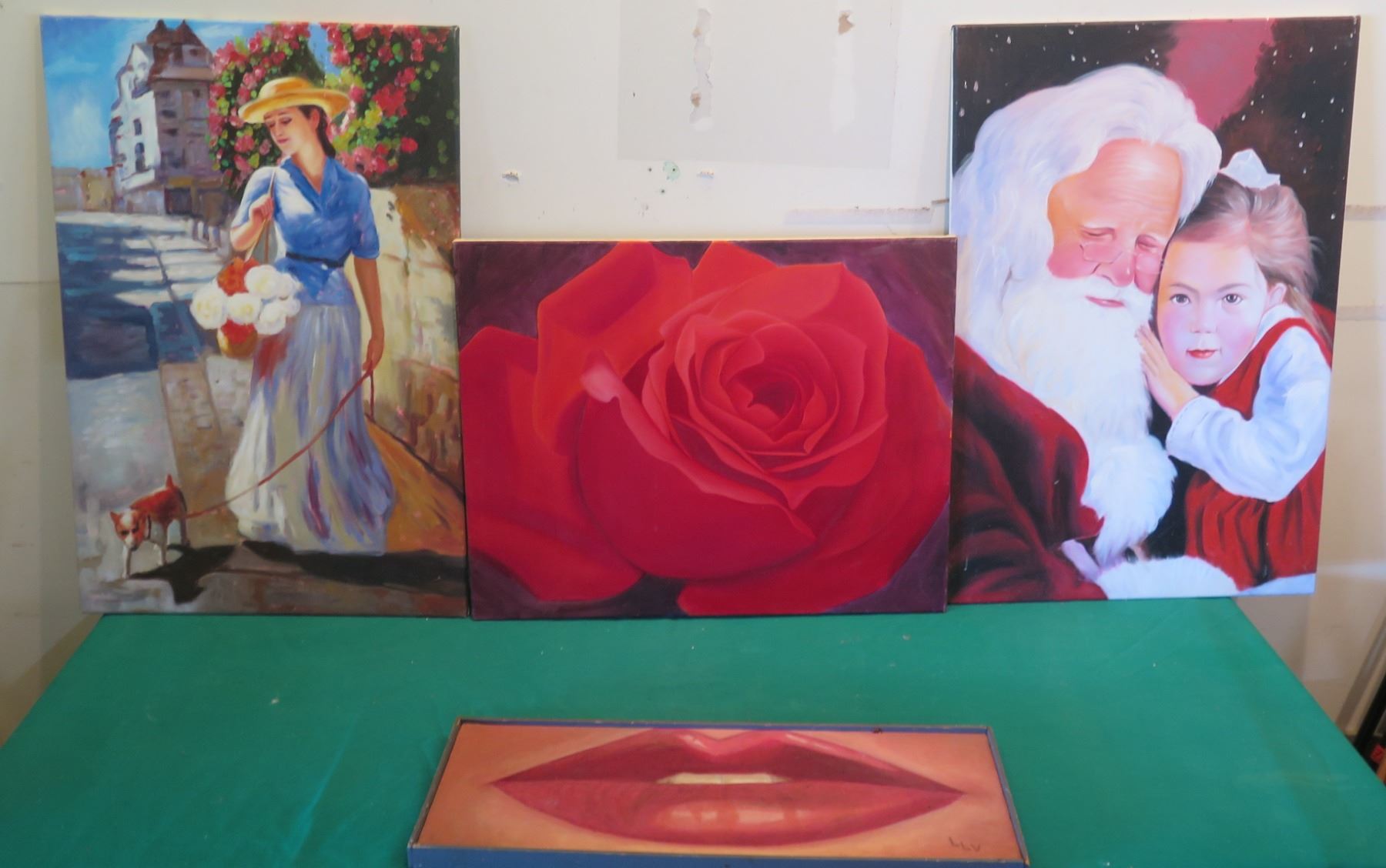 Qty 4 Unframed Artwork: Santa, Rose, Lips & Lady Misc Size