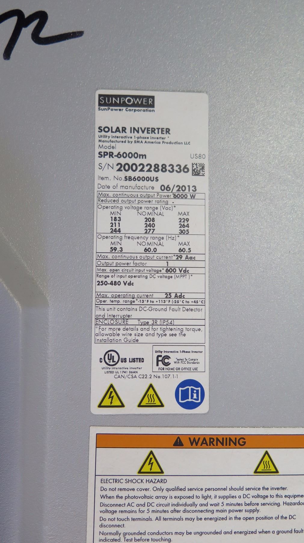 Qty 4 Used Sunpower SPR-6000M Inverters - Previously Installed, Working