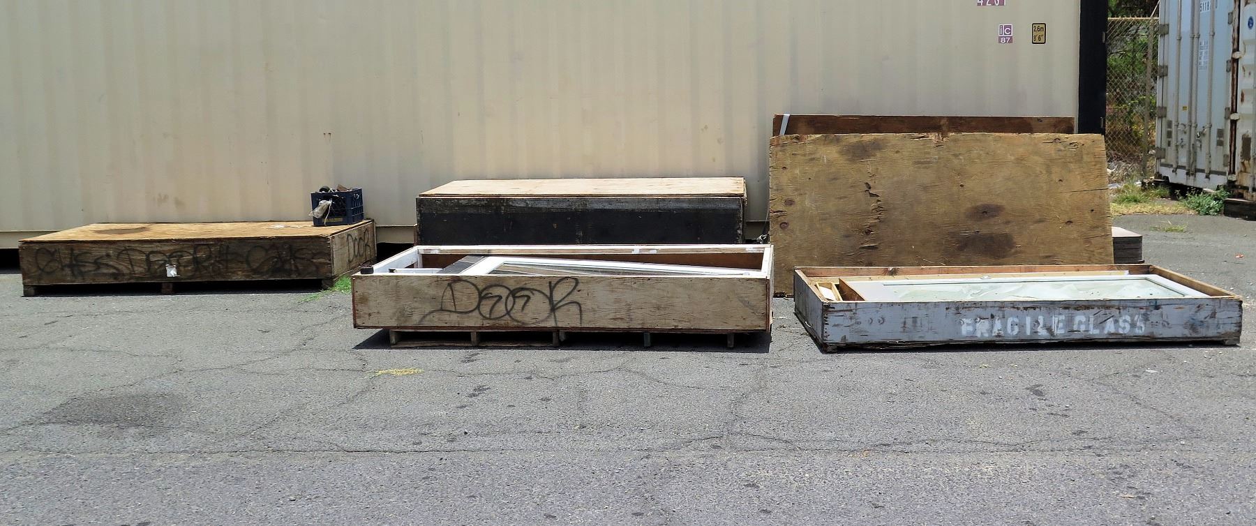 Qty 4 Wooden Crates of Multiple Glass Doors 79"x36"/83"x36" & Hardware