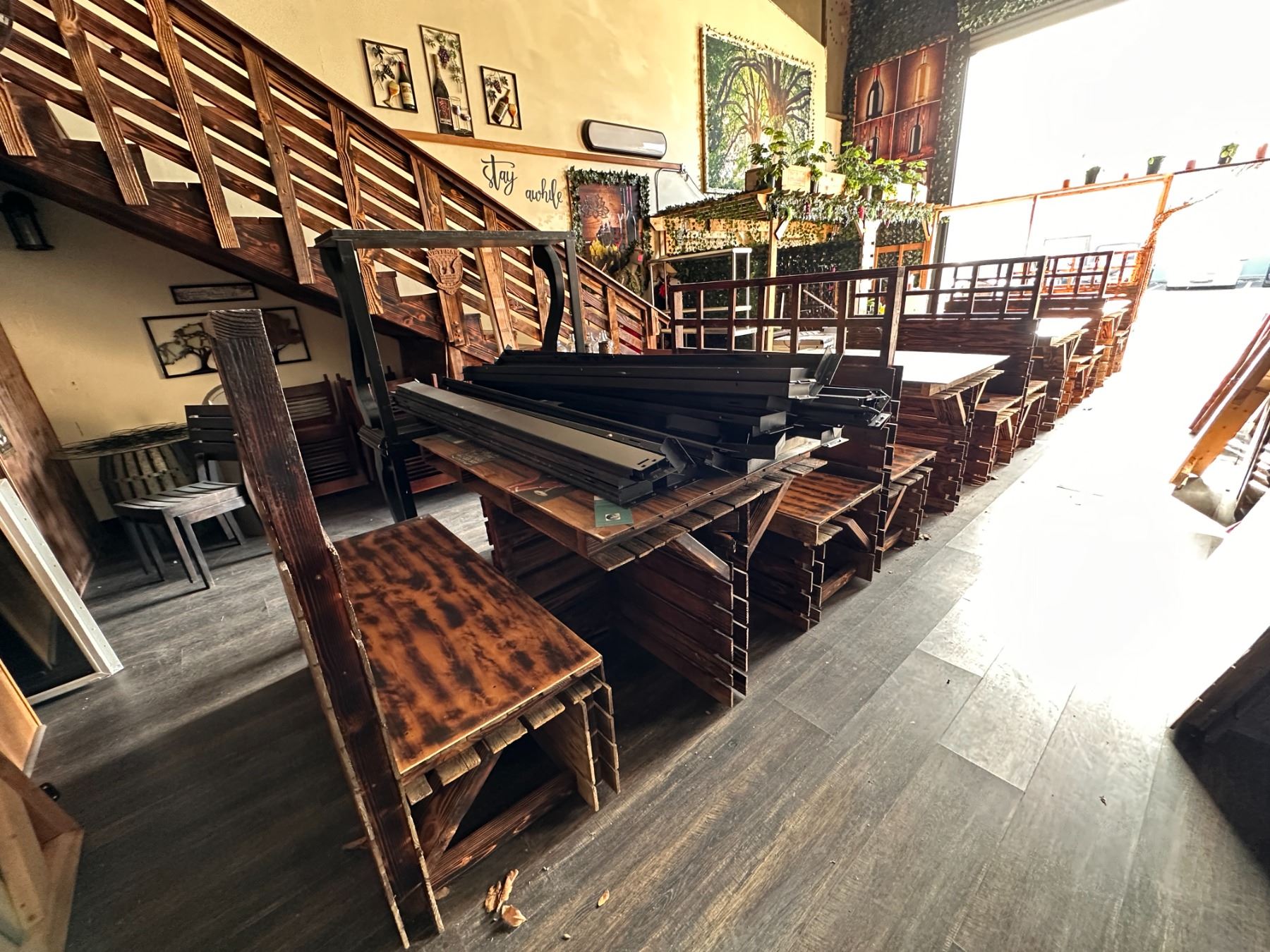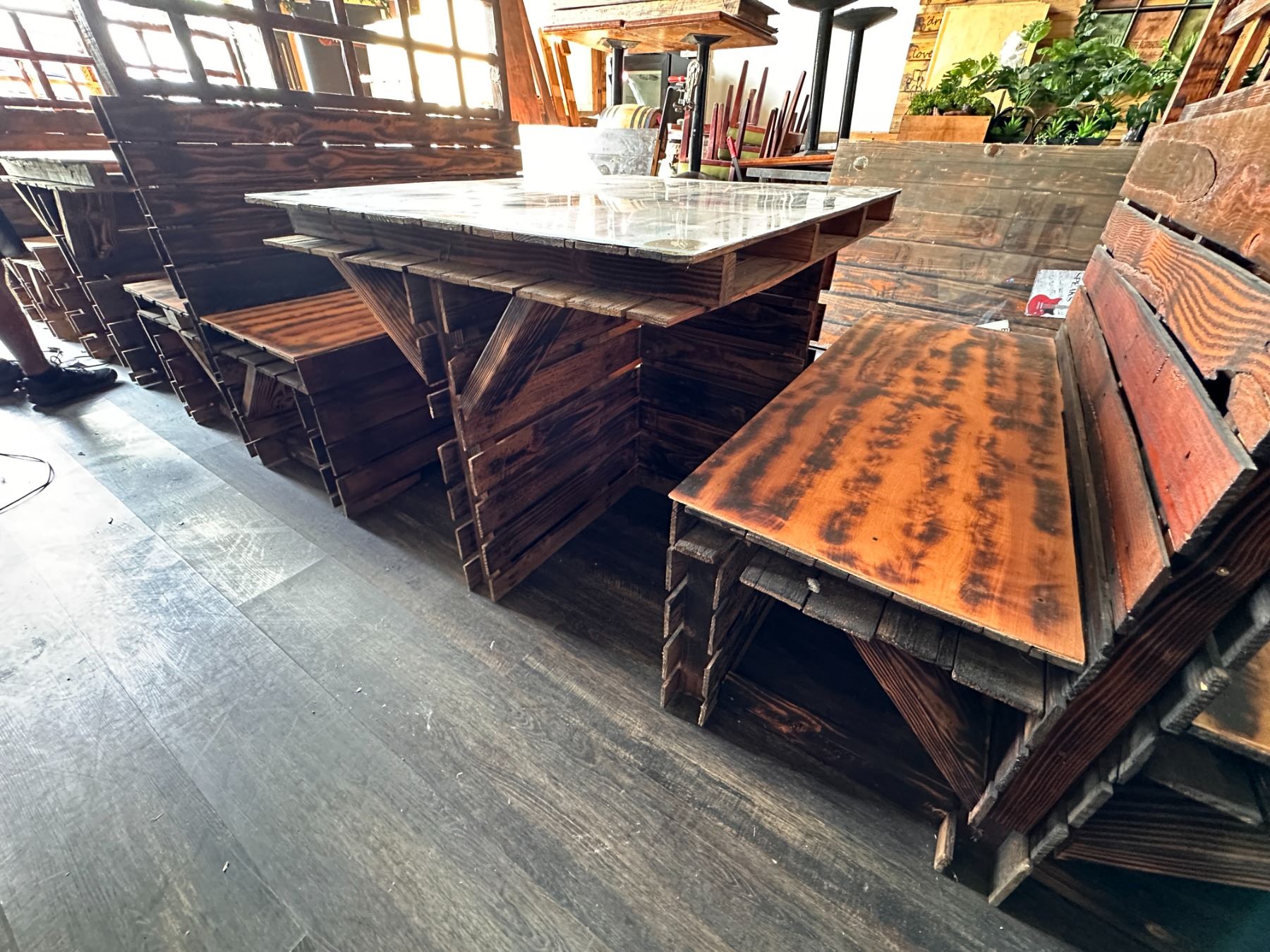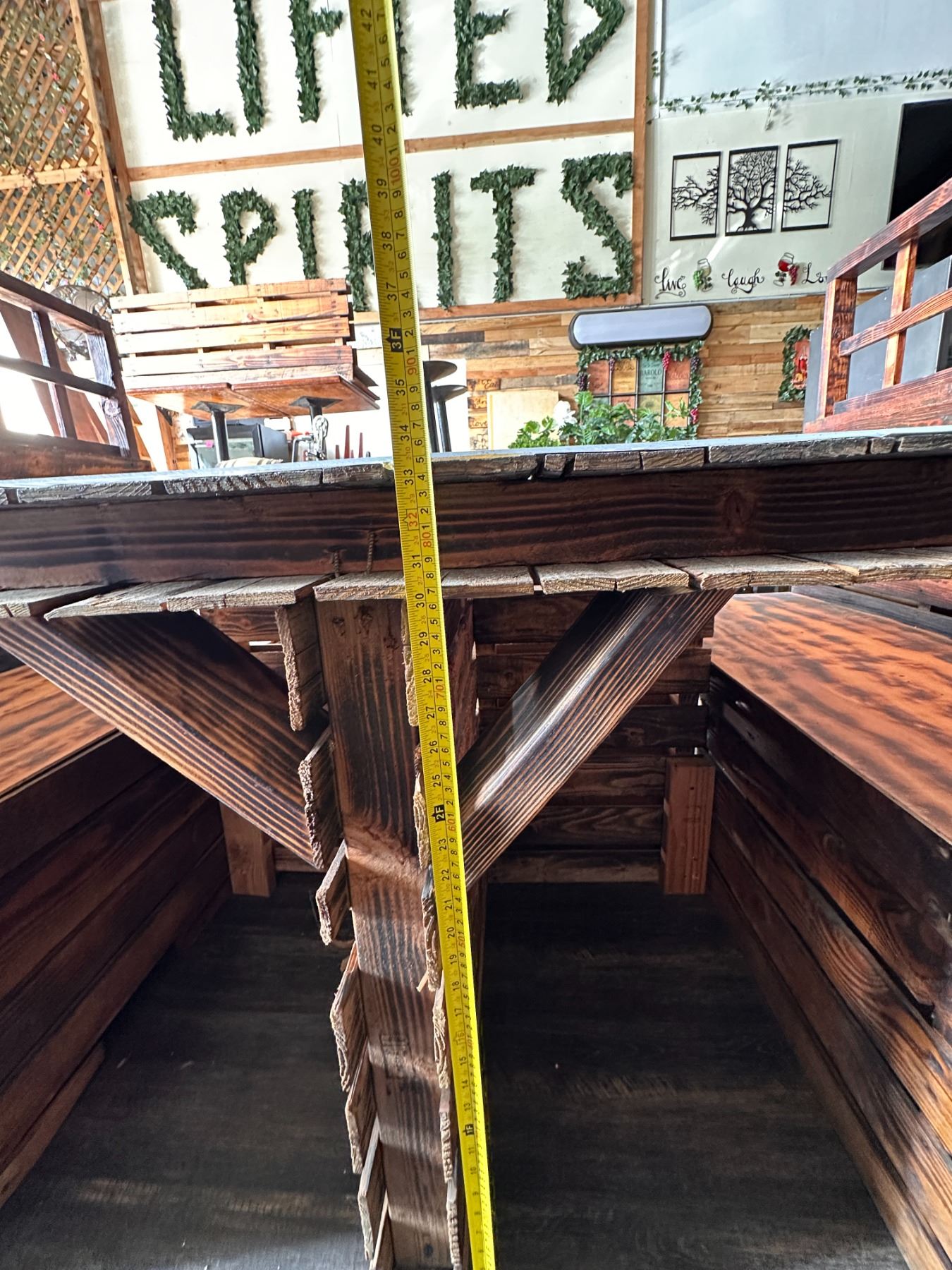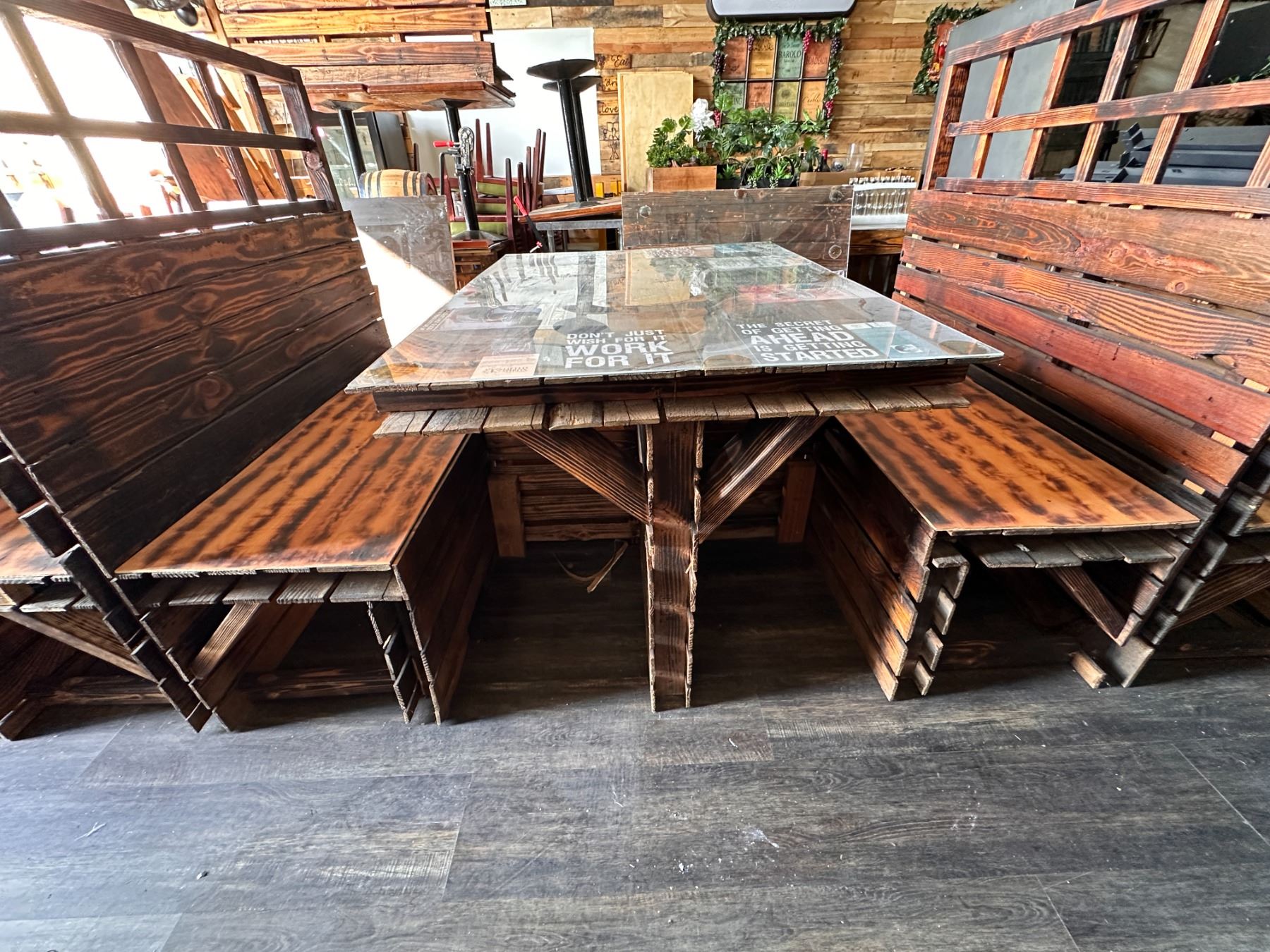 Qty 4 Wooden Tables 53.5" x 39.5" x 33"H w/ Bench Seating