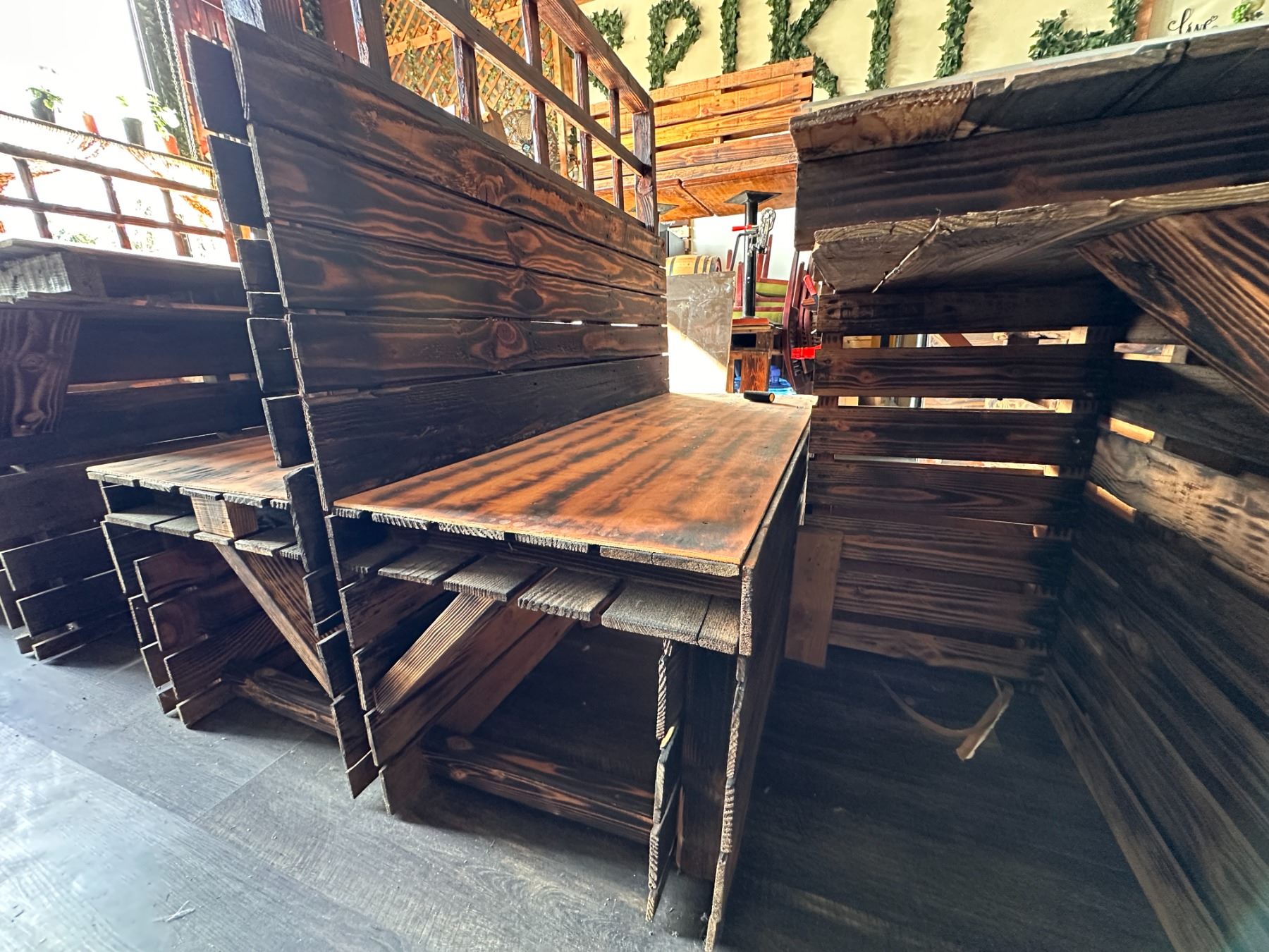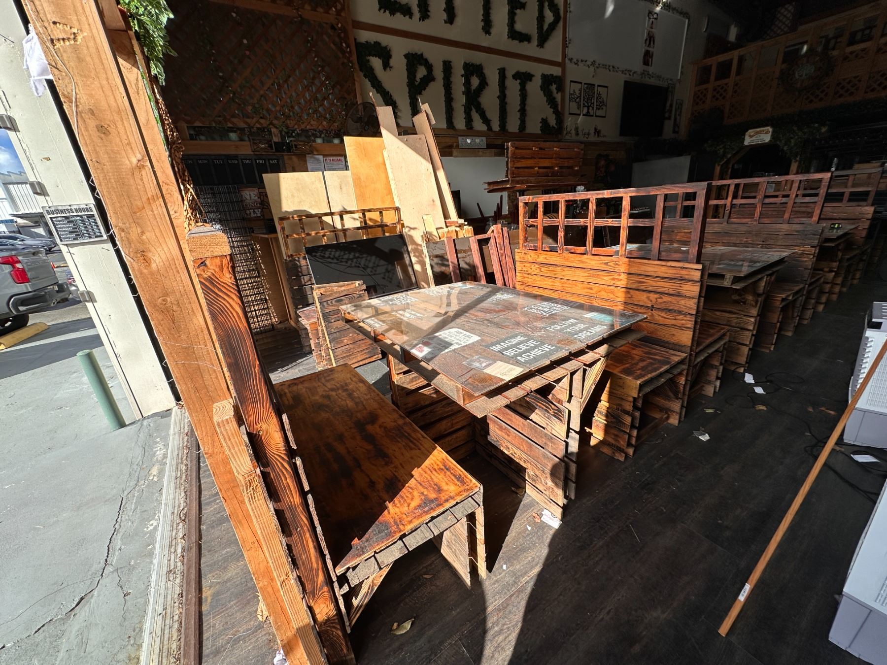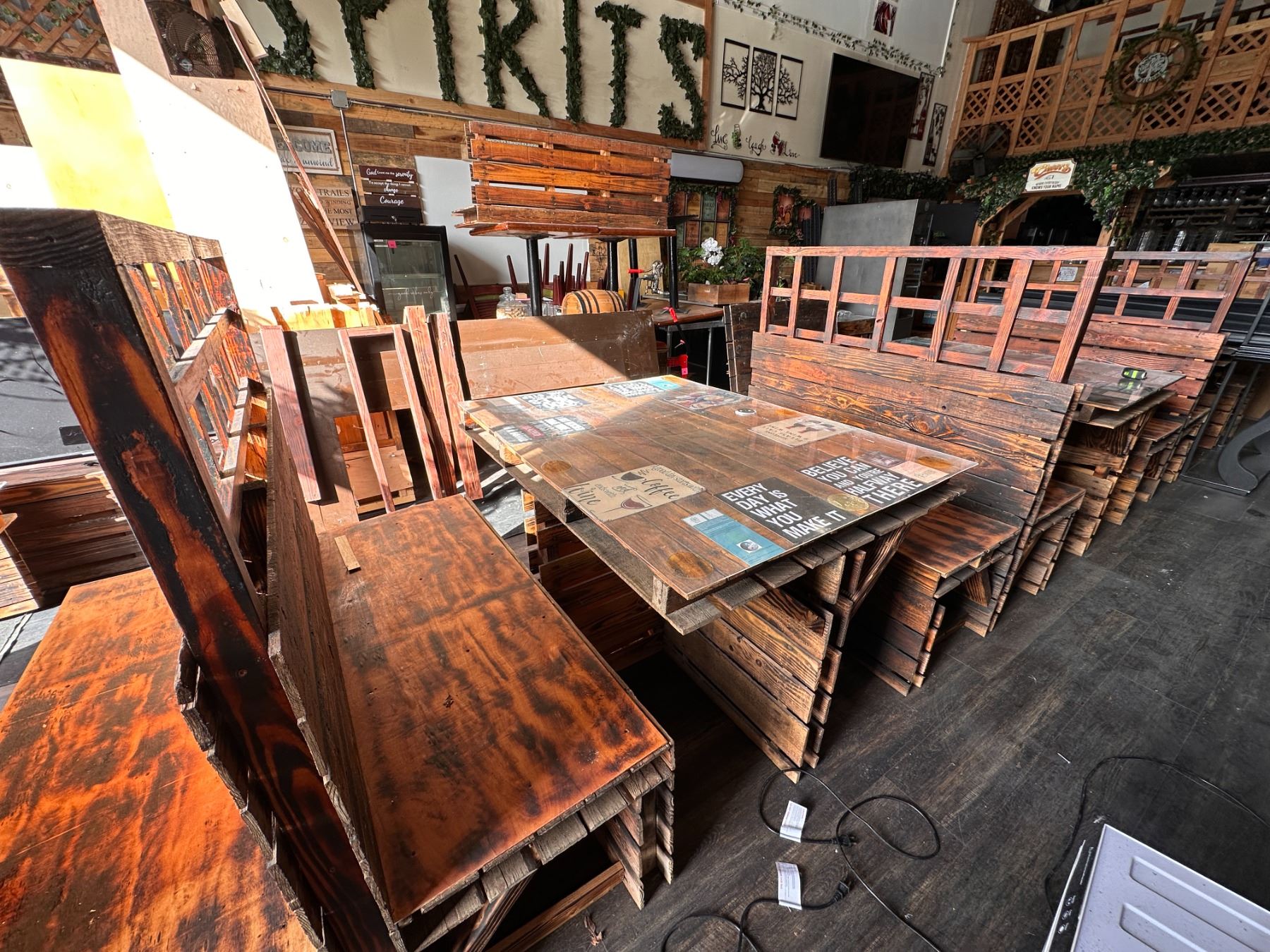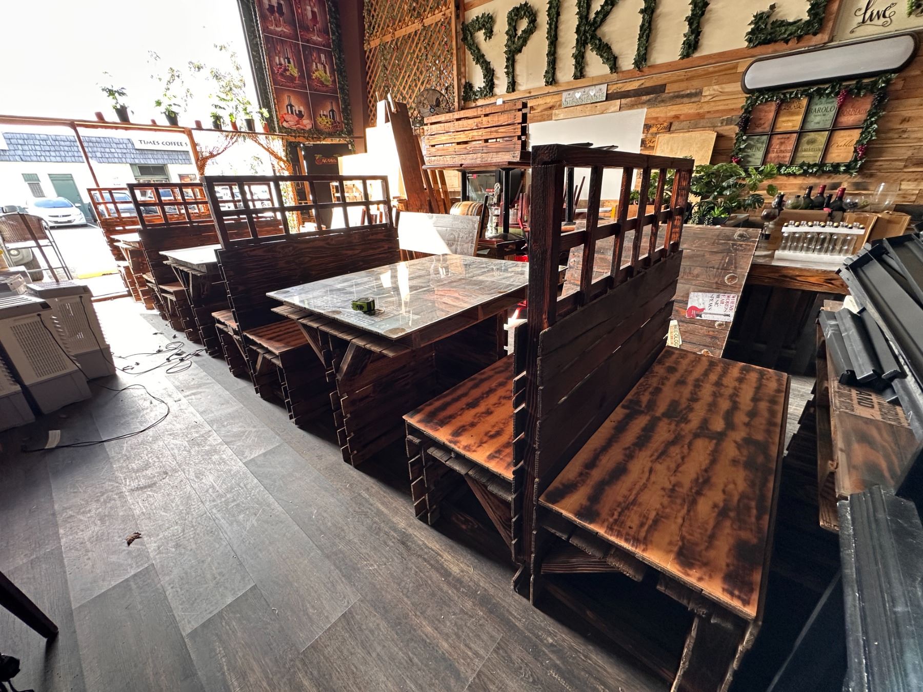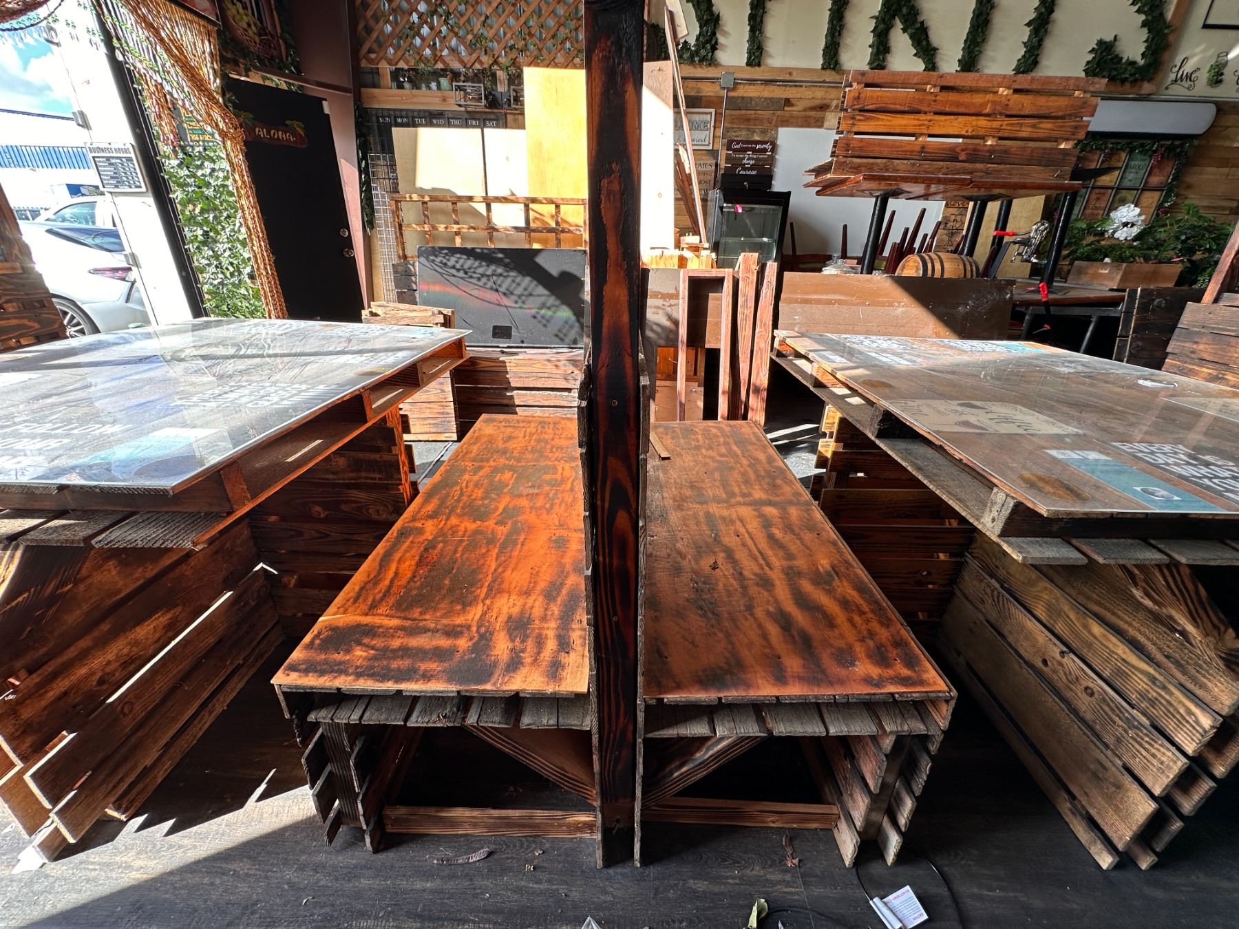 Qty 4 Wooden Tables 53.5" x 39.5" x 33"H w/ Bench Seating