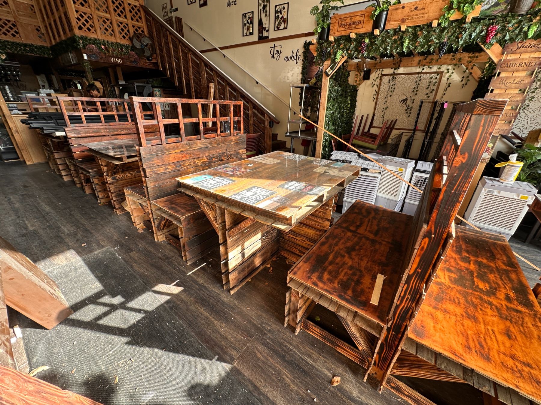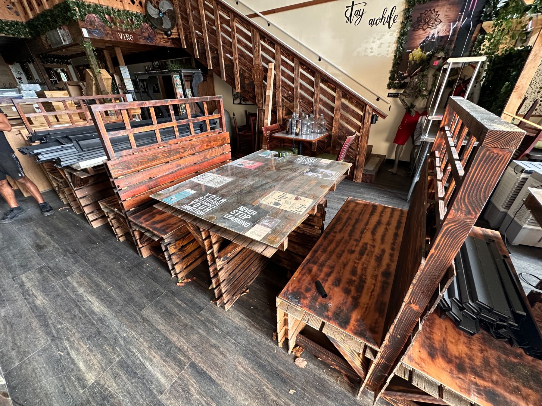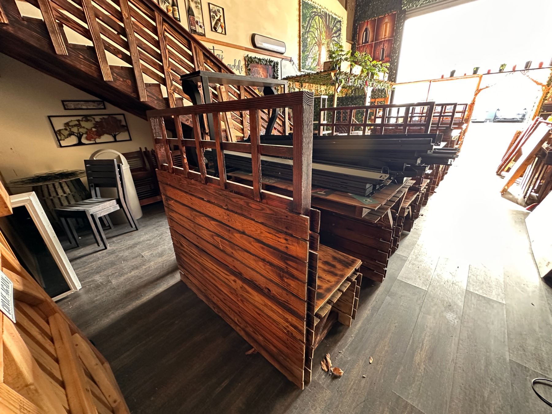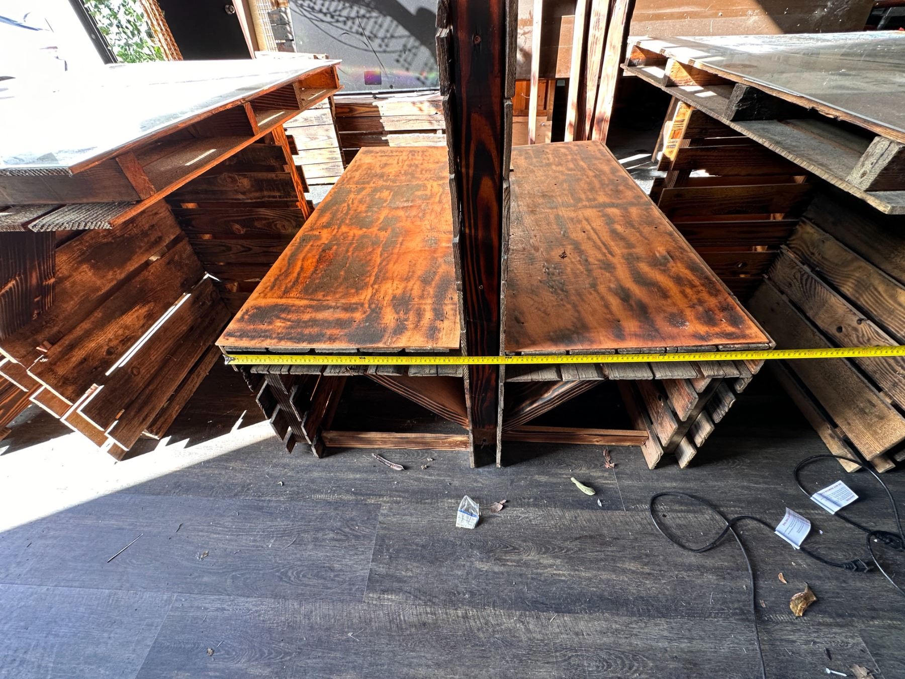 Qty 4 Wooden Tables 53.5" x 39.5" x 33"H w/ Bench Seating