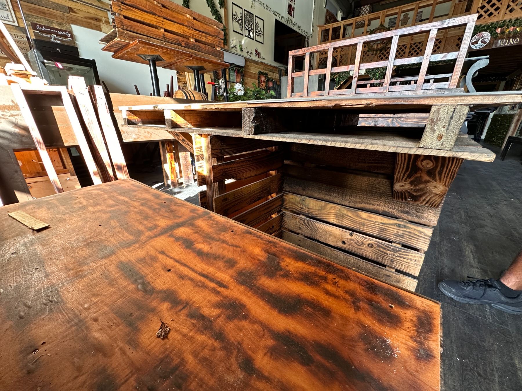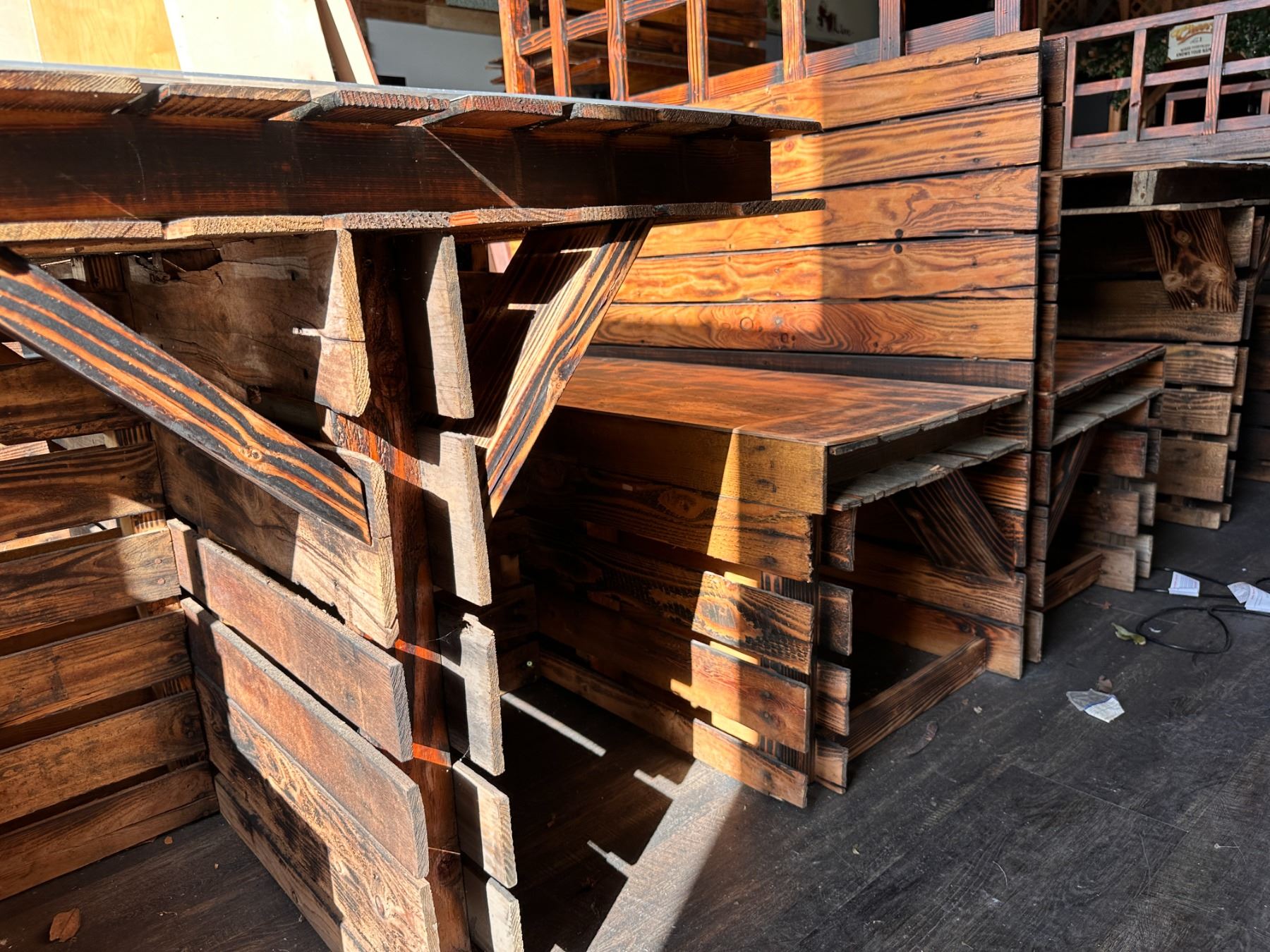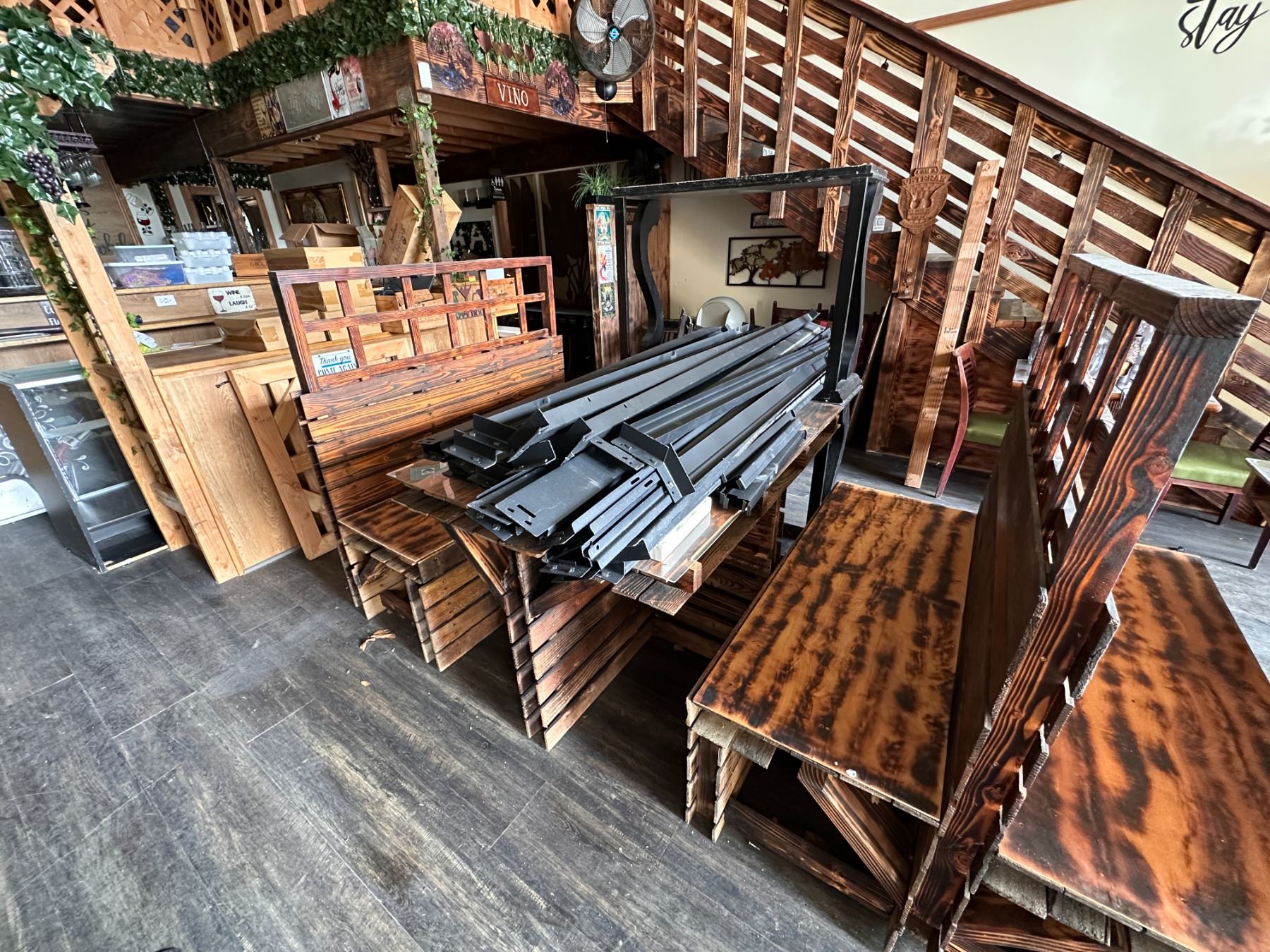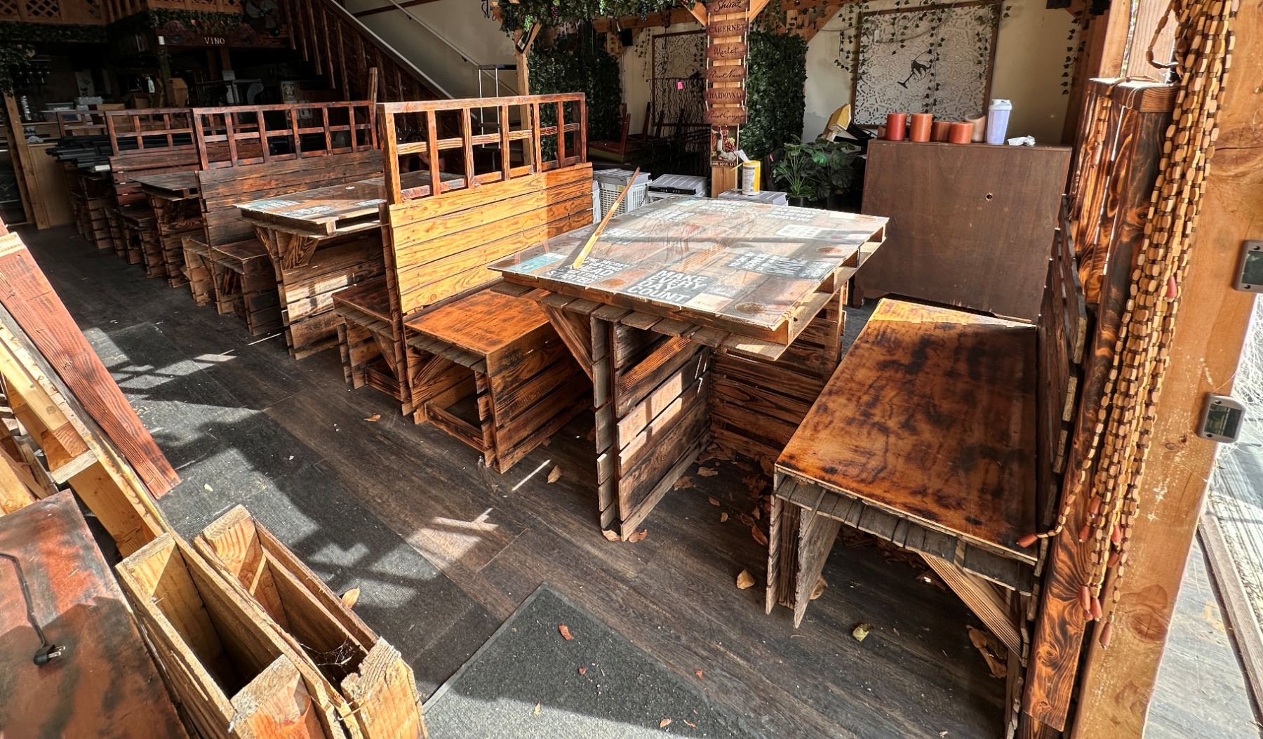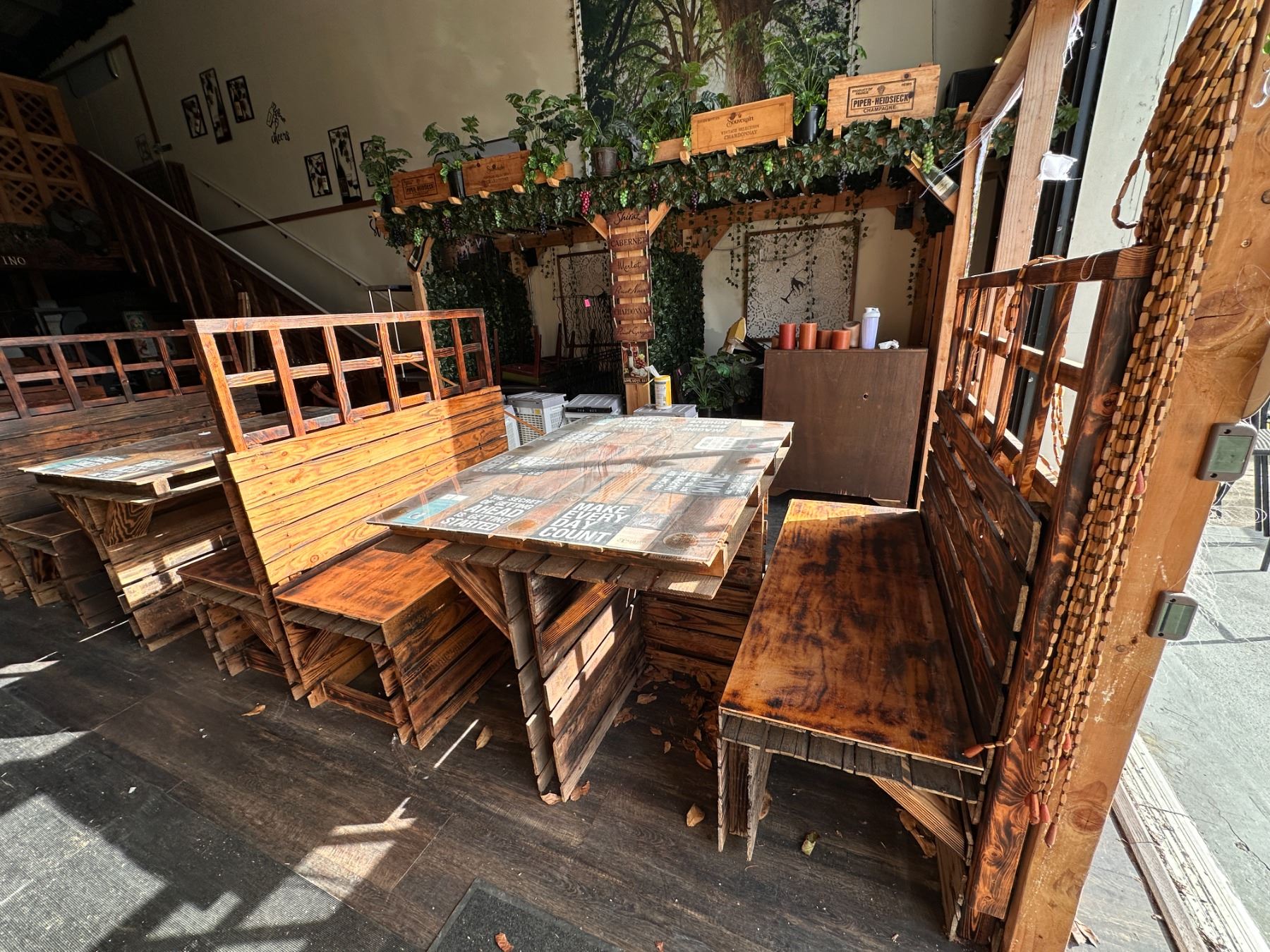 Qty 4 Wooden Tables 53.5" x 39.5" x 33"H w/ Bench Seating
