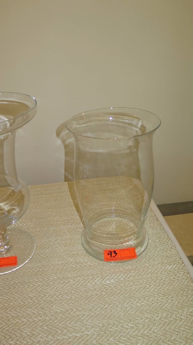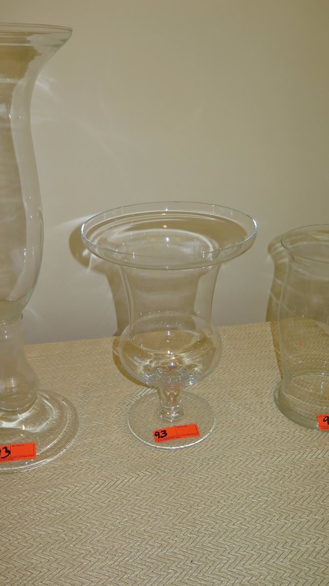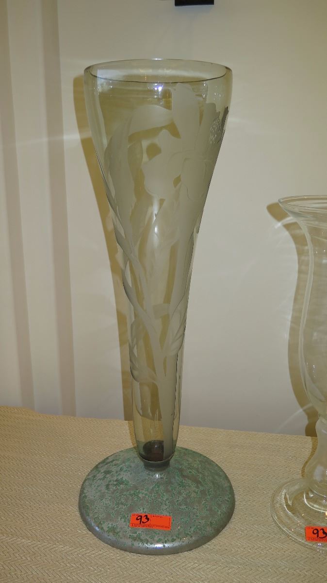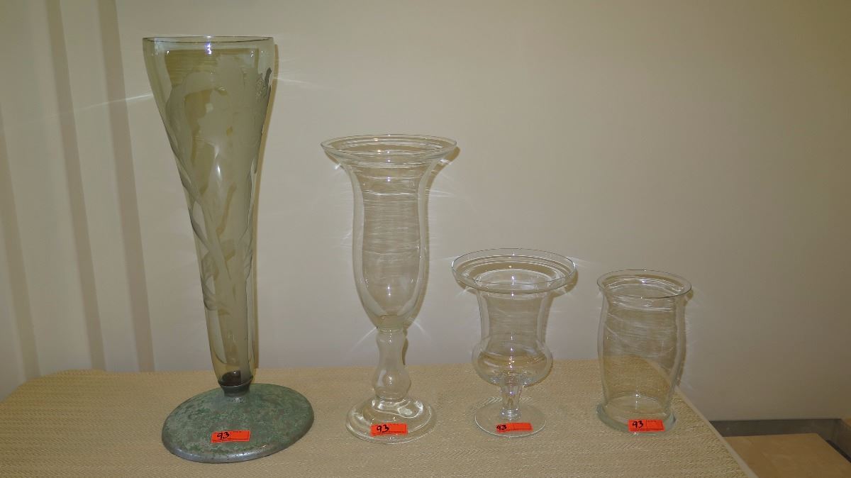 Qty 4 X-Large Glass Vases: Etched Tropical Foliage (34" tall), Goblet Style (28"), etc.