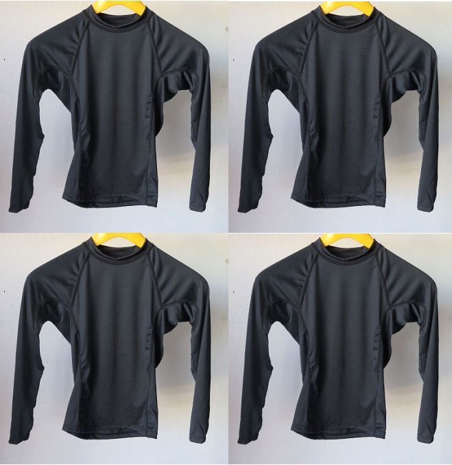 Qty 4 Youth Performance Fit Long Sleeve UV Tops, Black, Size 14