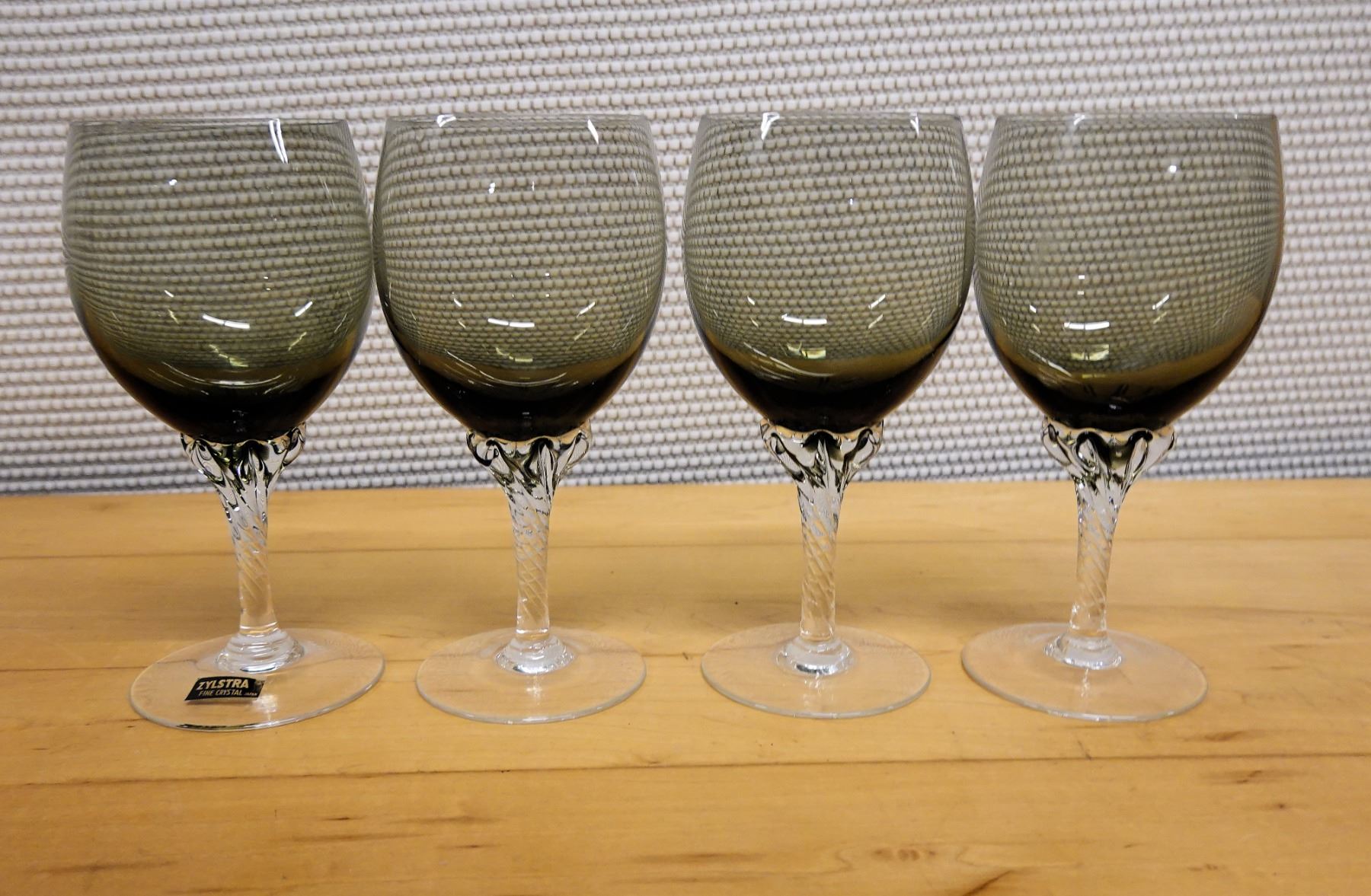 Qty 4 Zylstra Fine Crystal Japan Stemmed Wine Glasses 3" Dia, 6.75"H