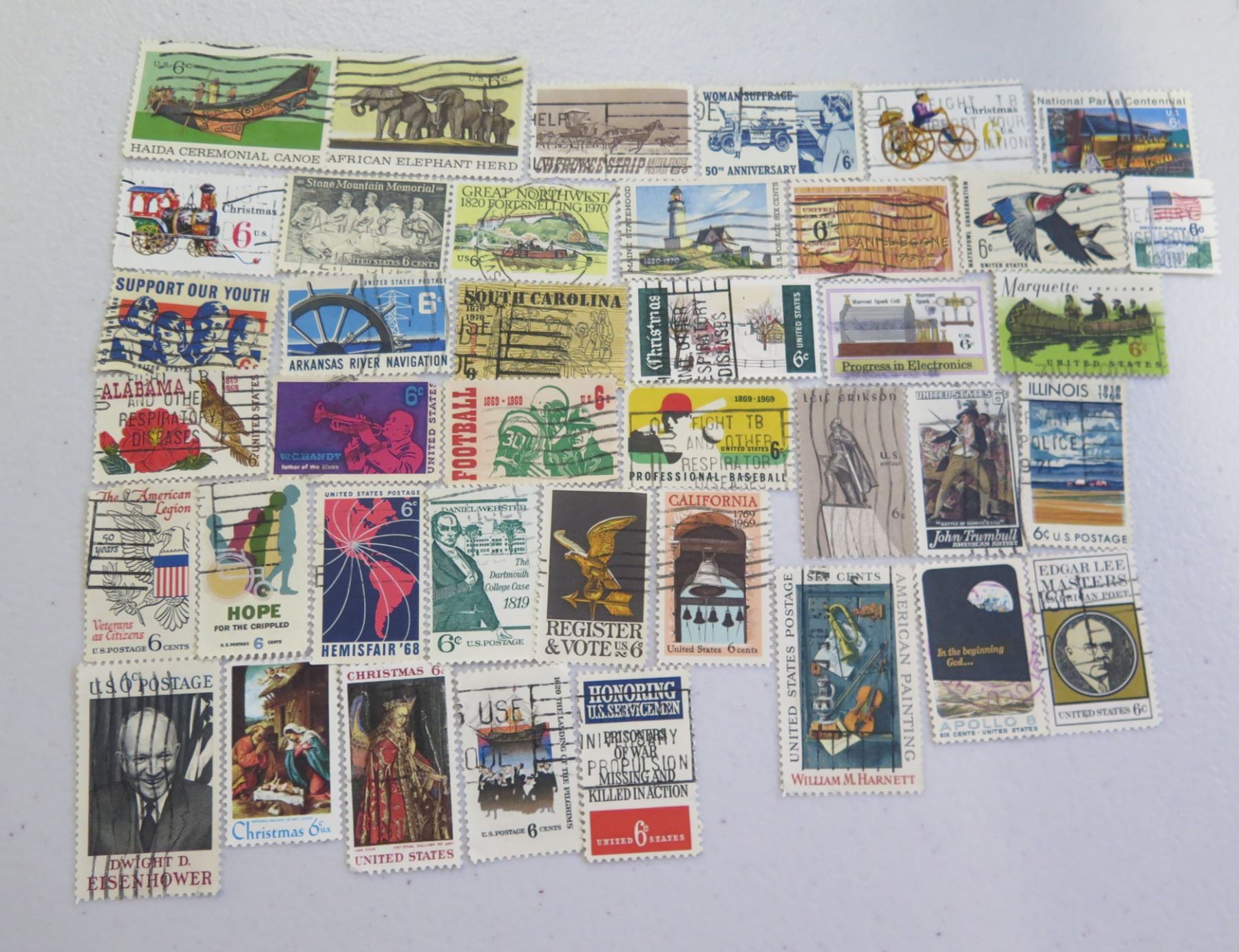 Qty 40 USA 6-Cent Stamps, Misc Designs
