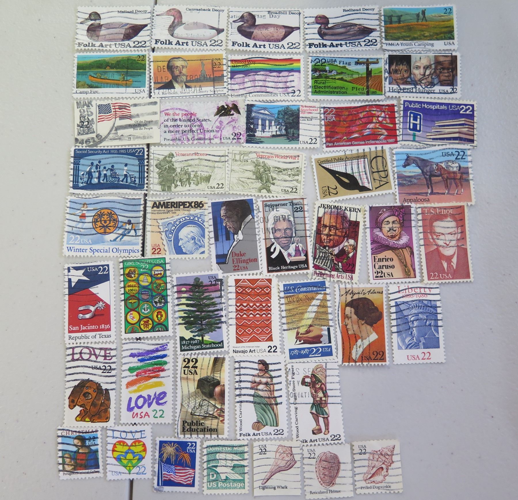 Qty 45+ USA 22-Cent Stamps, Misc Designs