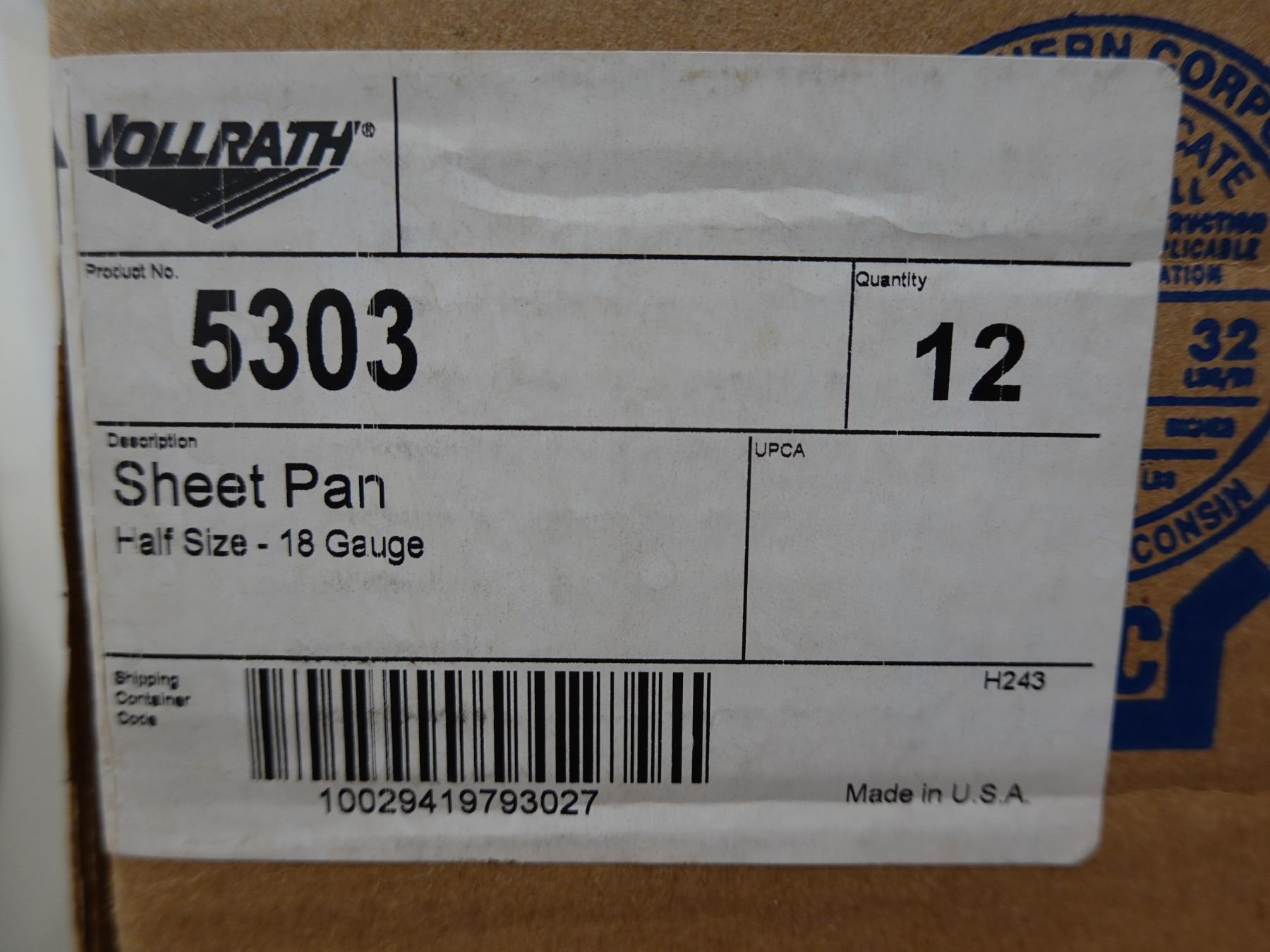 Qty 48 Vollrath 5303 Sheet Pans 18"x13" New in Box. Note: This item is large, heavy and may have sharp edges or grease. Removal is at buyer's risk; bring tools, equipment & help.