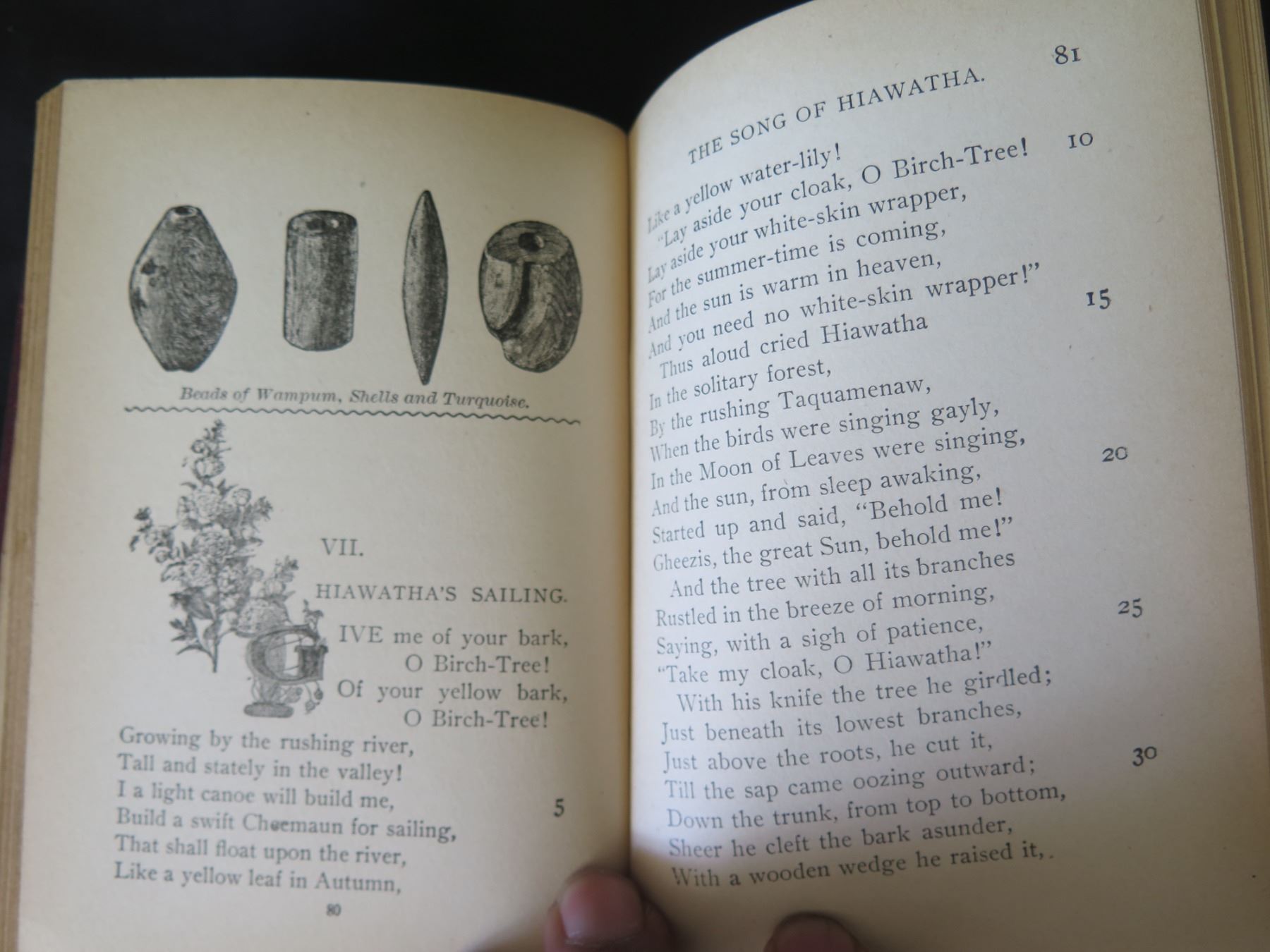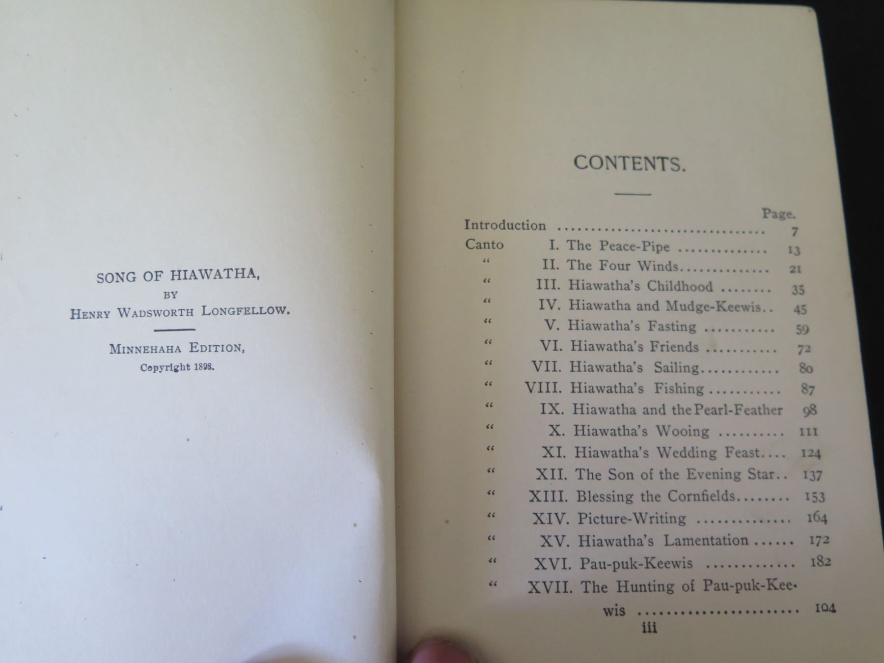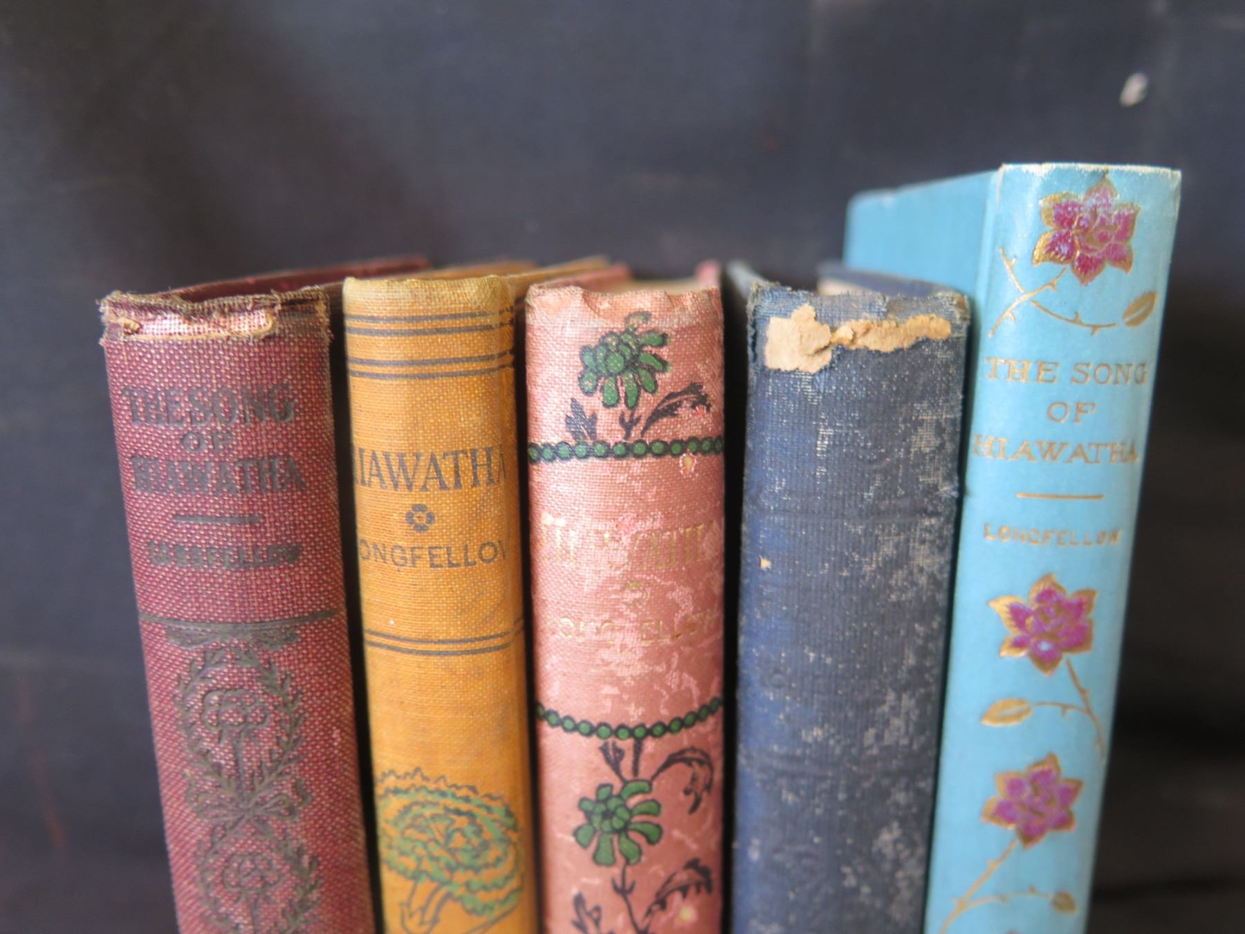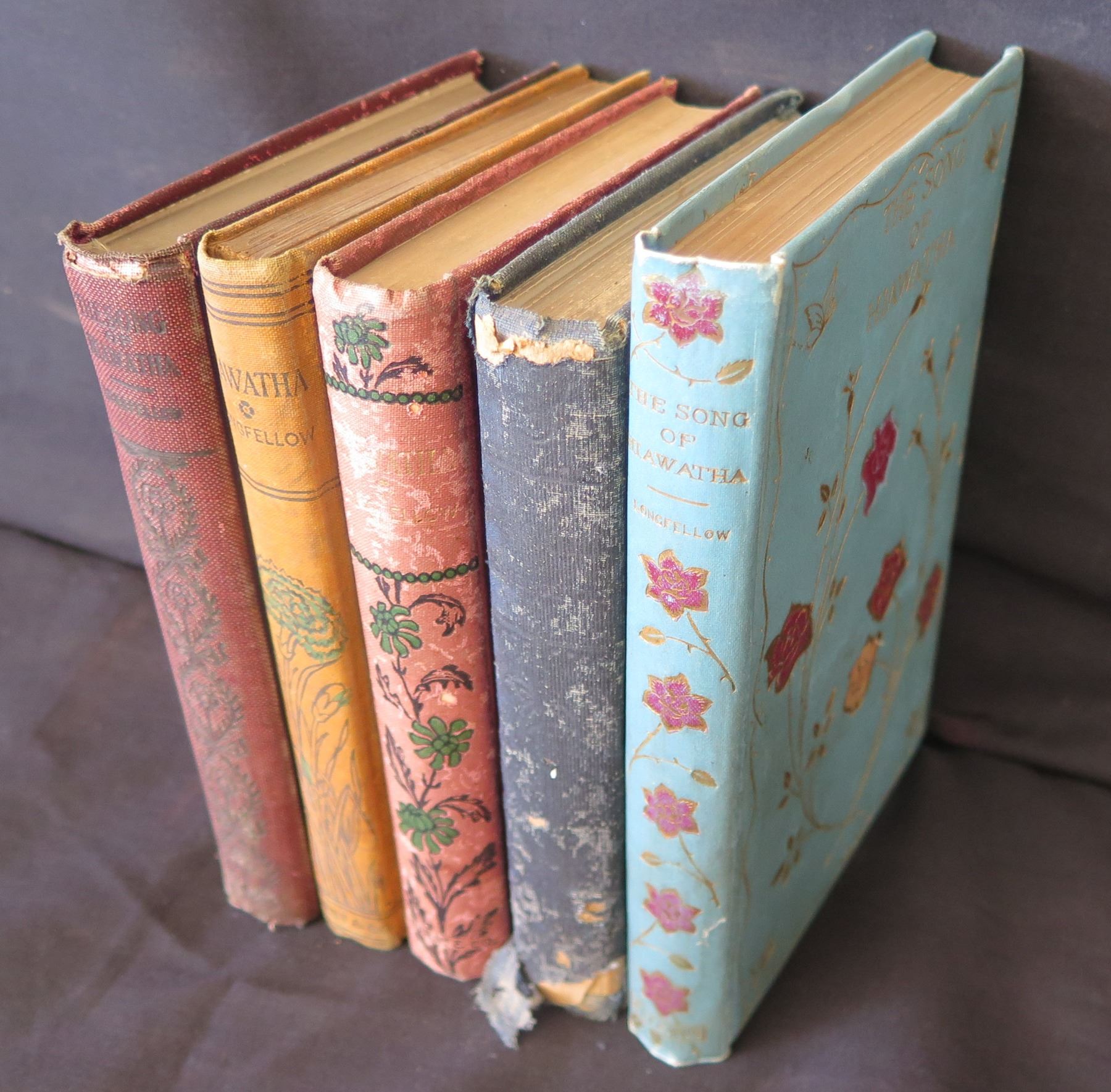Qty 5 Antique Books: Song of Hiawatha by Longfellow Copyright 1890's, Misc Editions