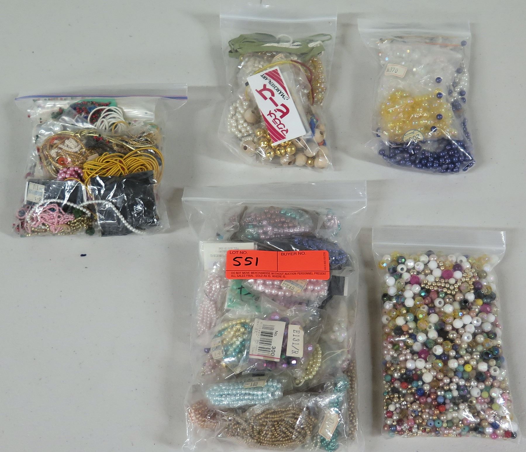 Qty 5 Bags Jewelry Making Supplies - Beads, Cords, Necklaces, Pearls, etc