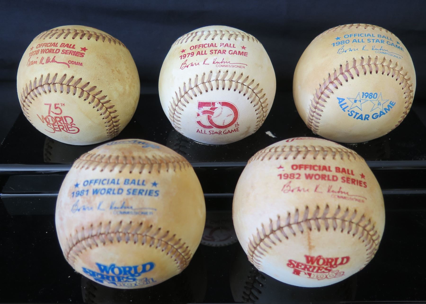 Qty 5 Baseballs: 1978 World Series, 1979, 80, 81 & 82 All-Star Game Balls
