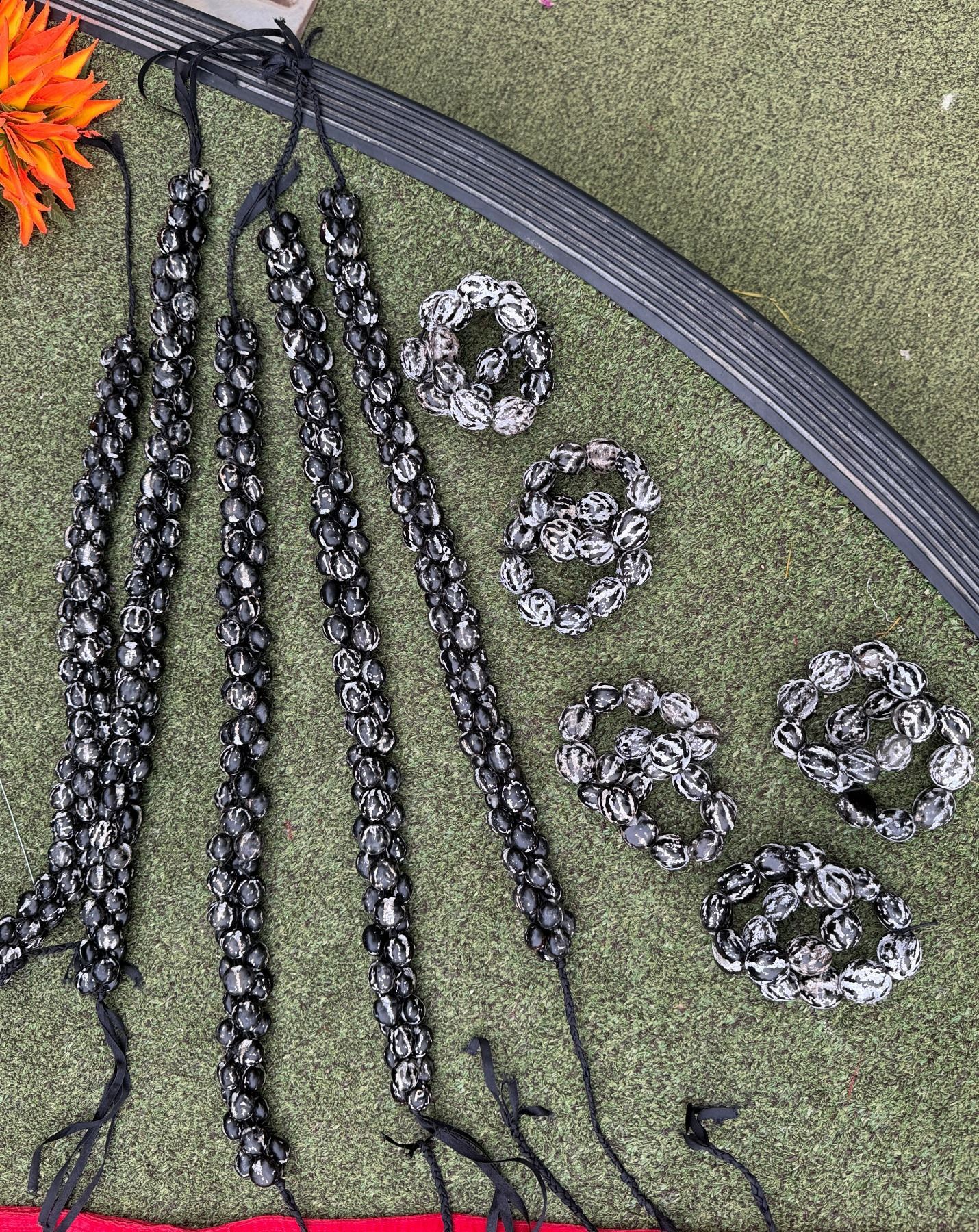 Qty 5 Black Kukui Nut Lei w/ 10 Matching Bracelets