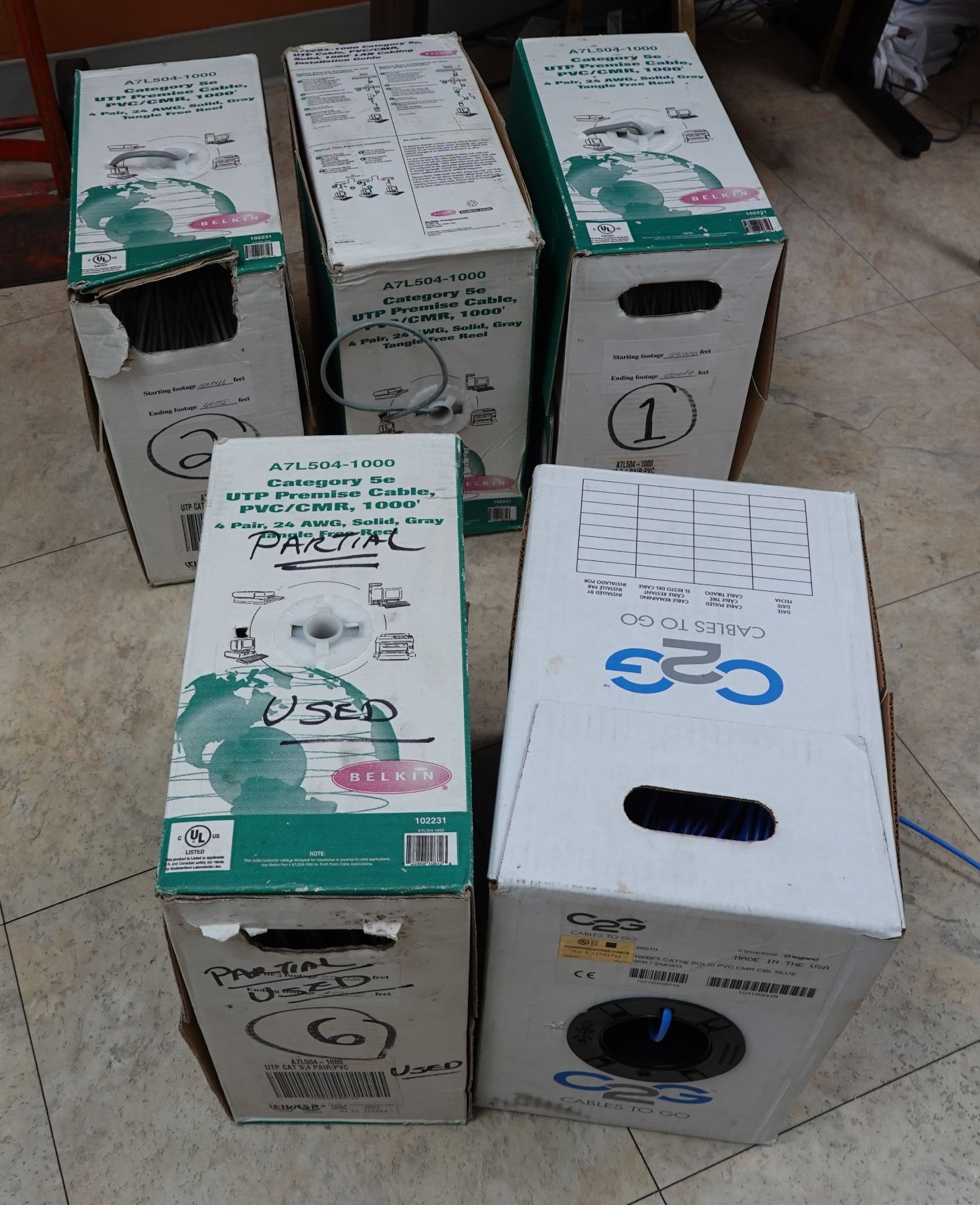 Qty 5 Boxes Belkin UTP Premium Cable, C2G Cables to Go (partially used)