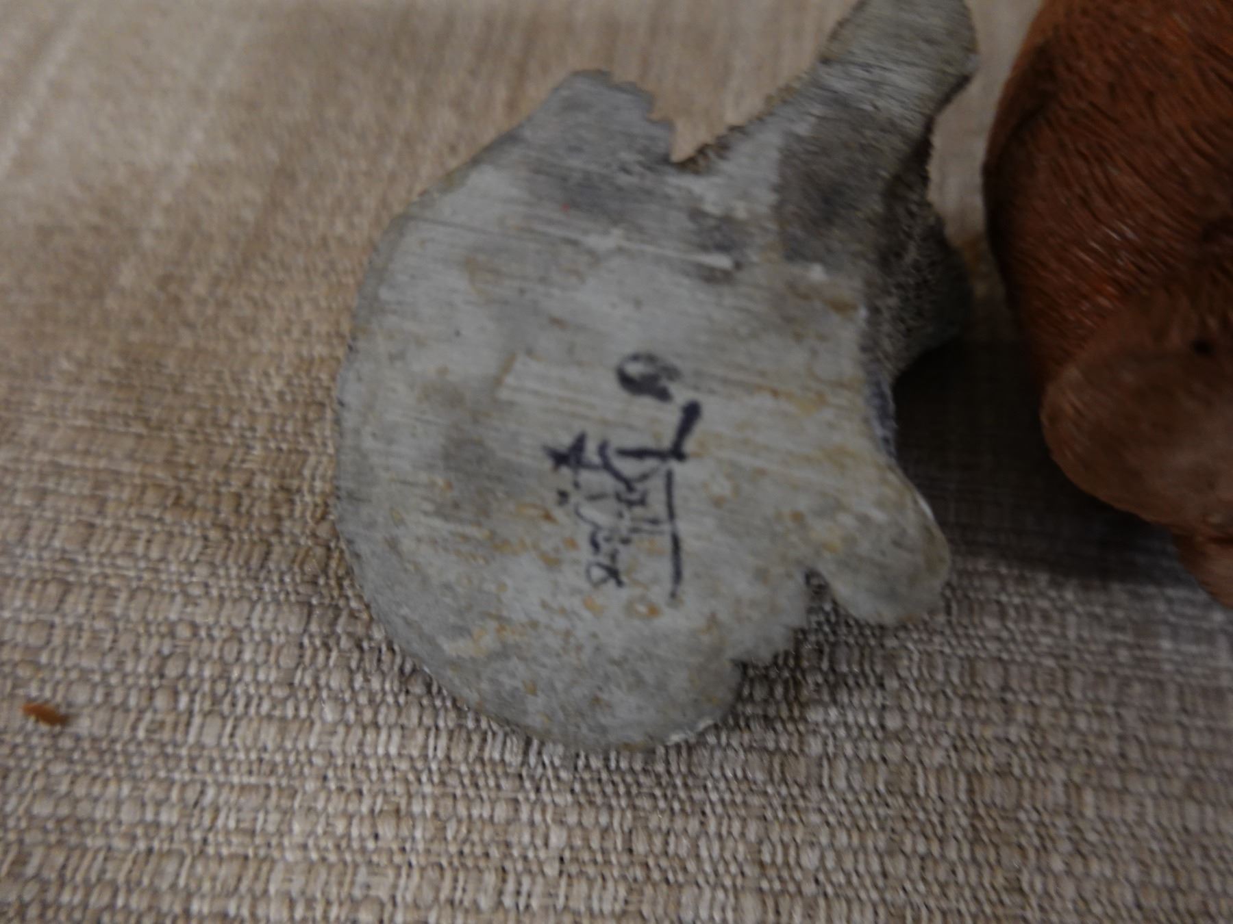 Qty 5 Ceramic Figurines: 3 Rabbits, Walrus & Racoon, Some Signed, Misc Sizes