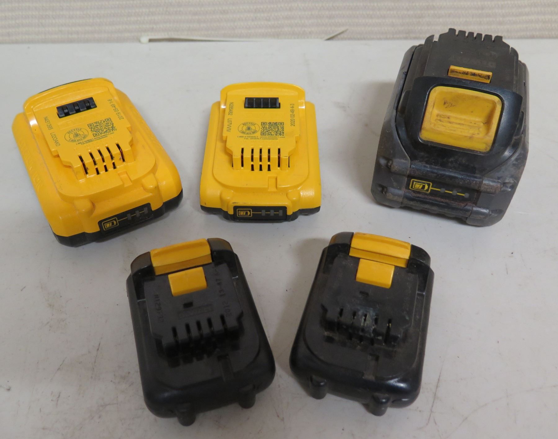 Qty 5 DeWalt Batteries: 2 @ 20V Lithium Ion, 12V Lithium Ion & Flex Volt 60V