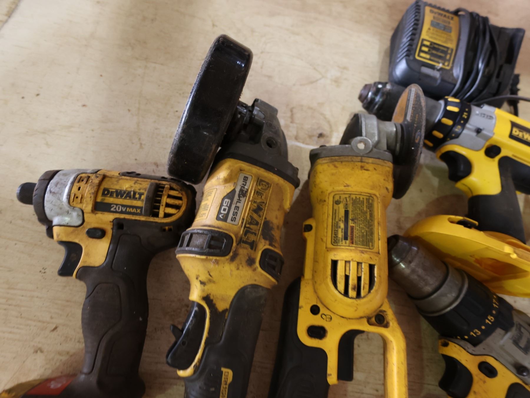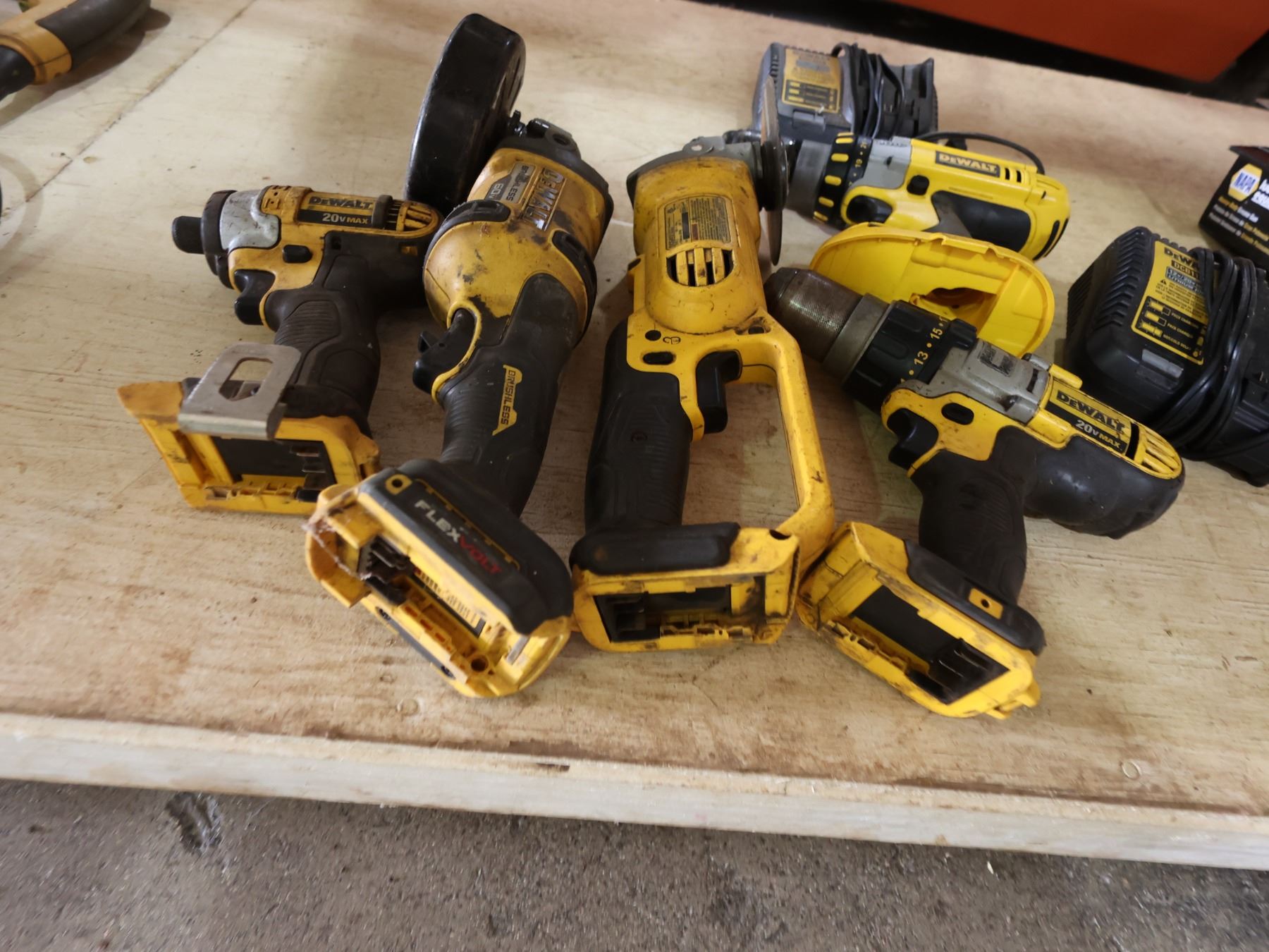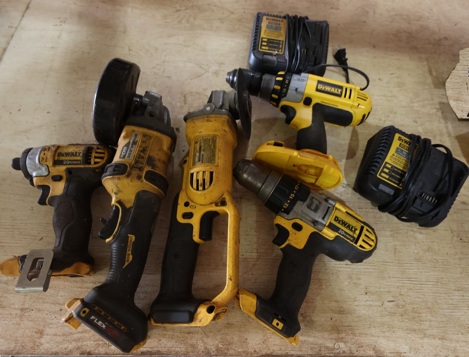 Qty 5 DeWalt Power Tools & 2 Chargers: Grinders, Drills, etc