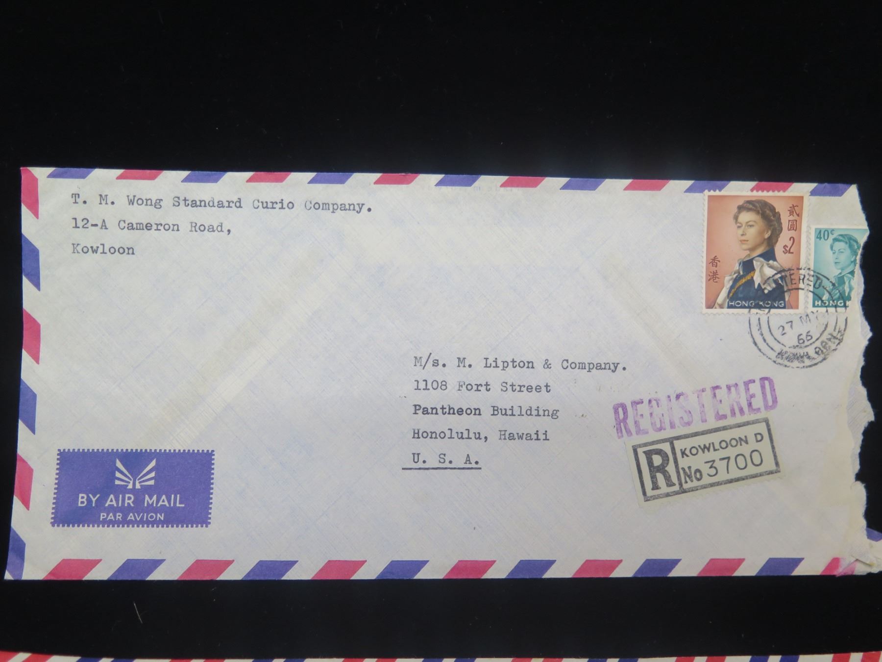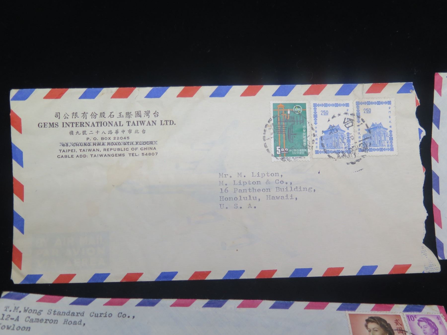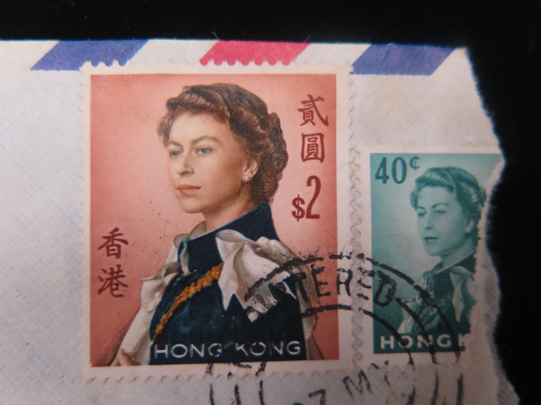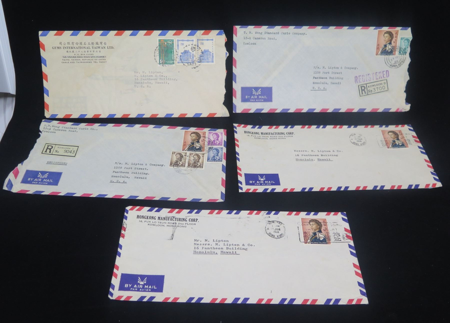 Qty 5 Envelopes w/ Stamps: Queen Elizabeth, Taiwan, Hong Kong