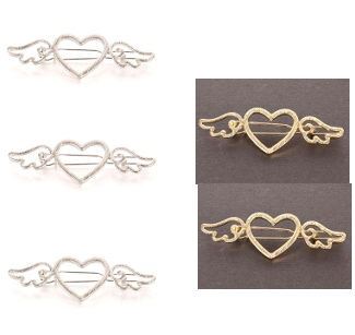 Qty 5 Girl's Hearts w/ Wings Barettes: 2 Gold-Tone, 3 Silver-Tone