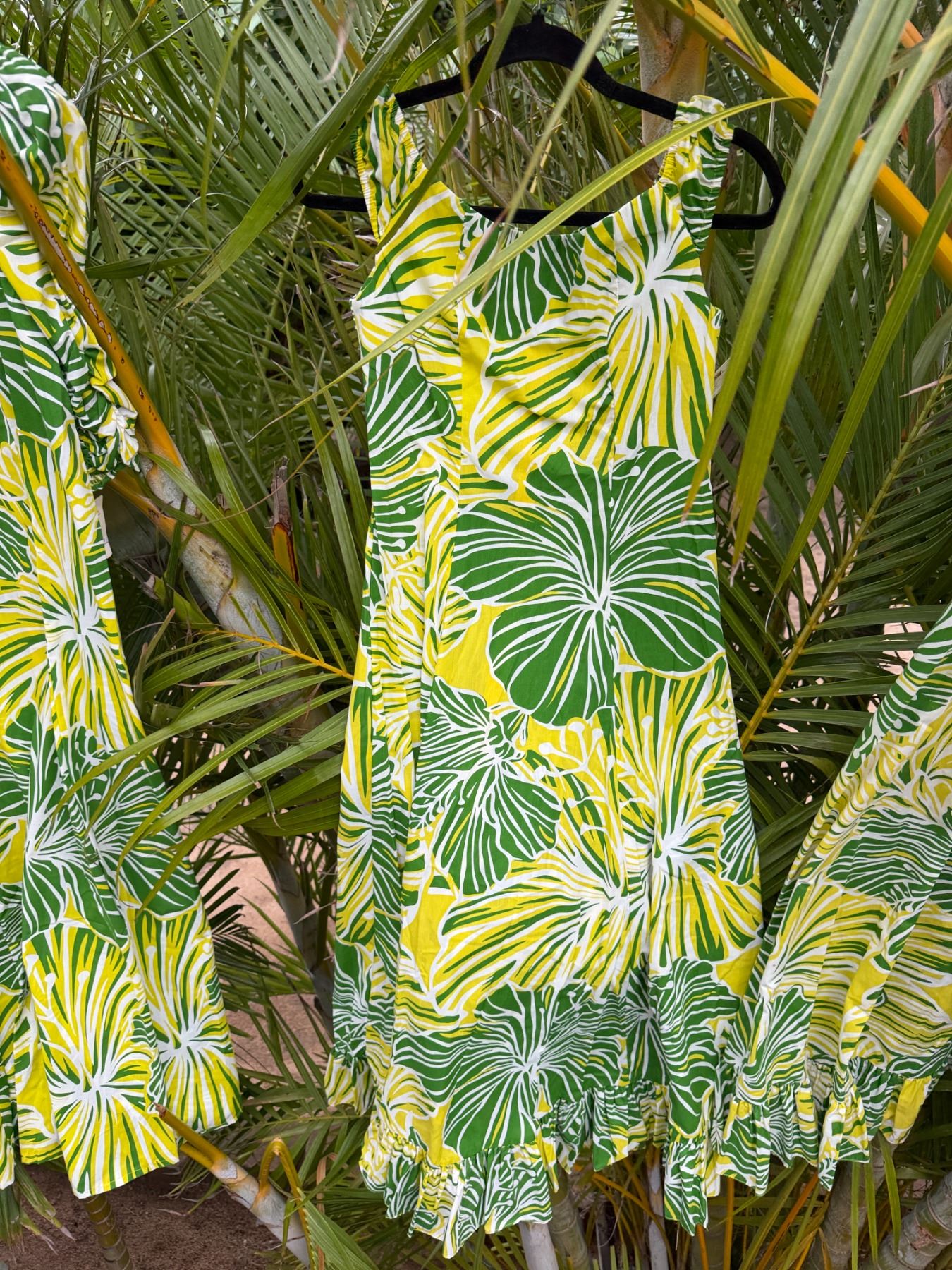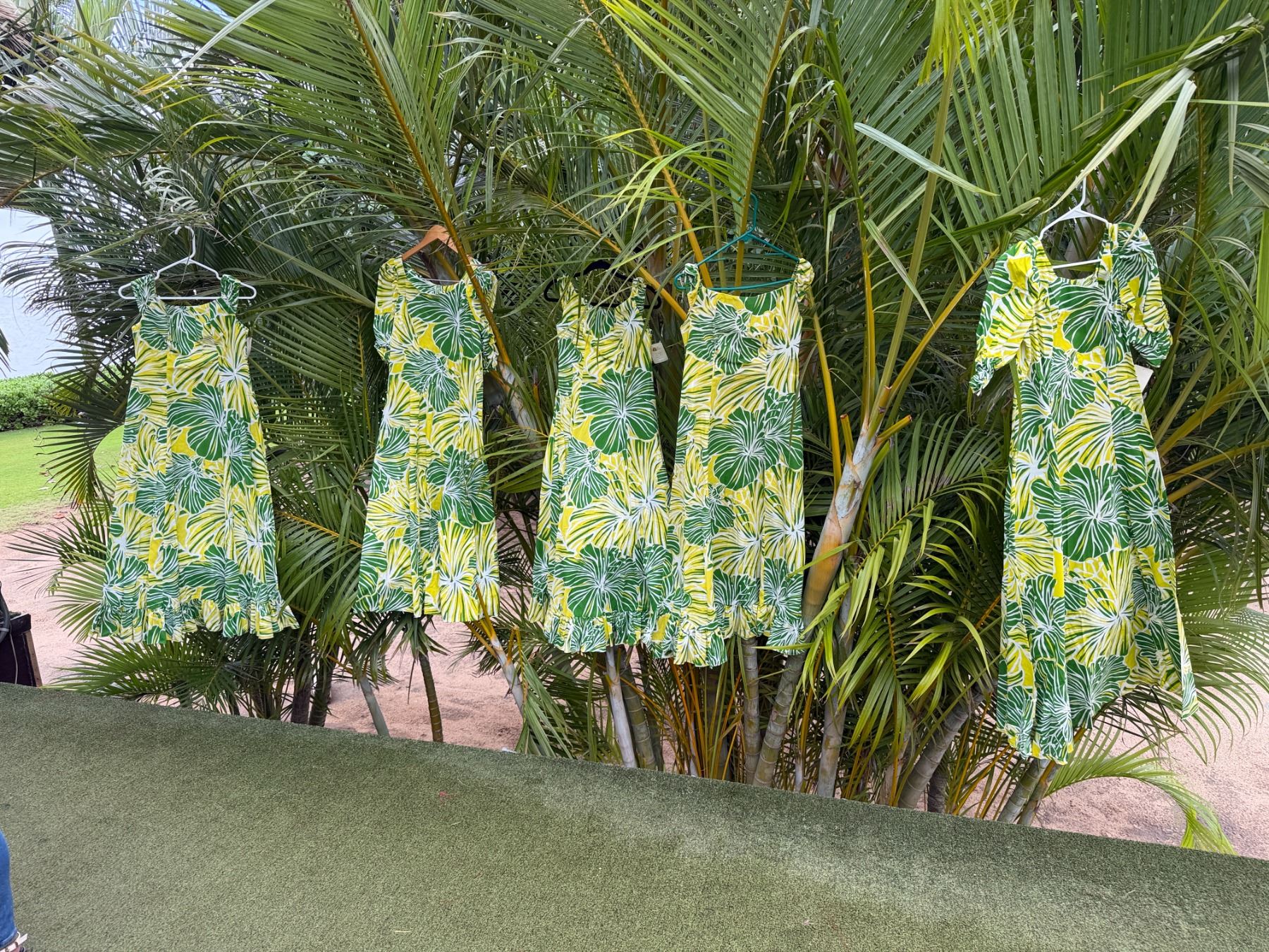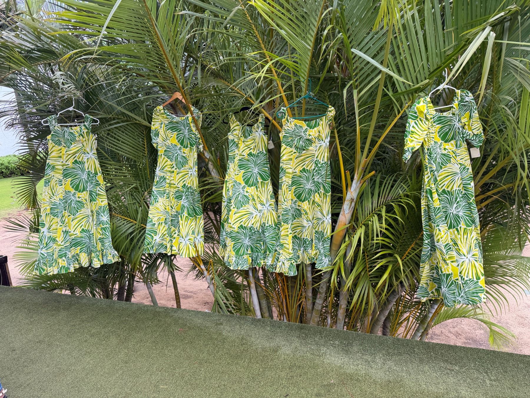Qty 5 Green Leaf-Print Hawaiian Dresses, Misc Styles & Sizes