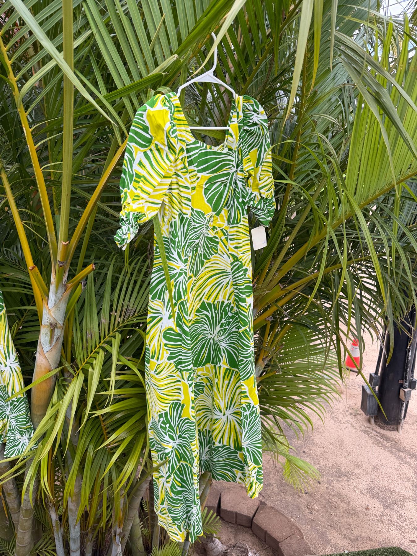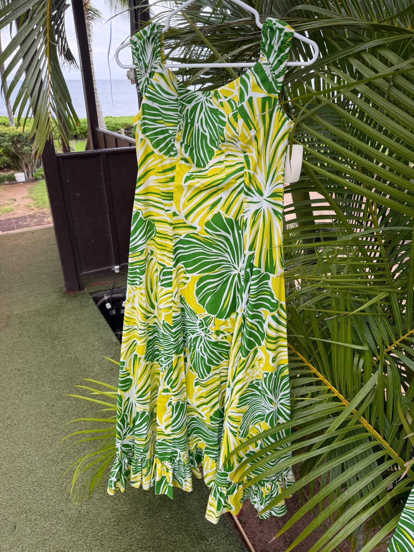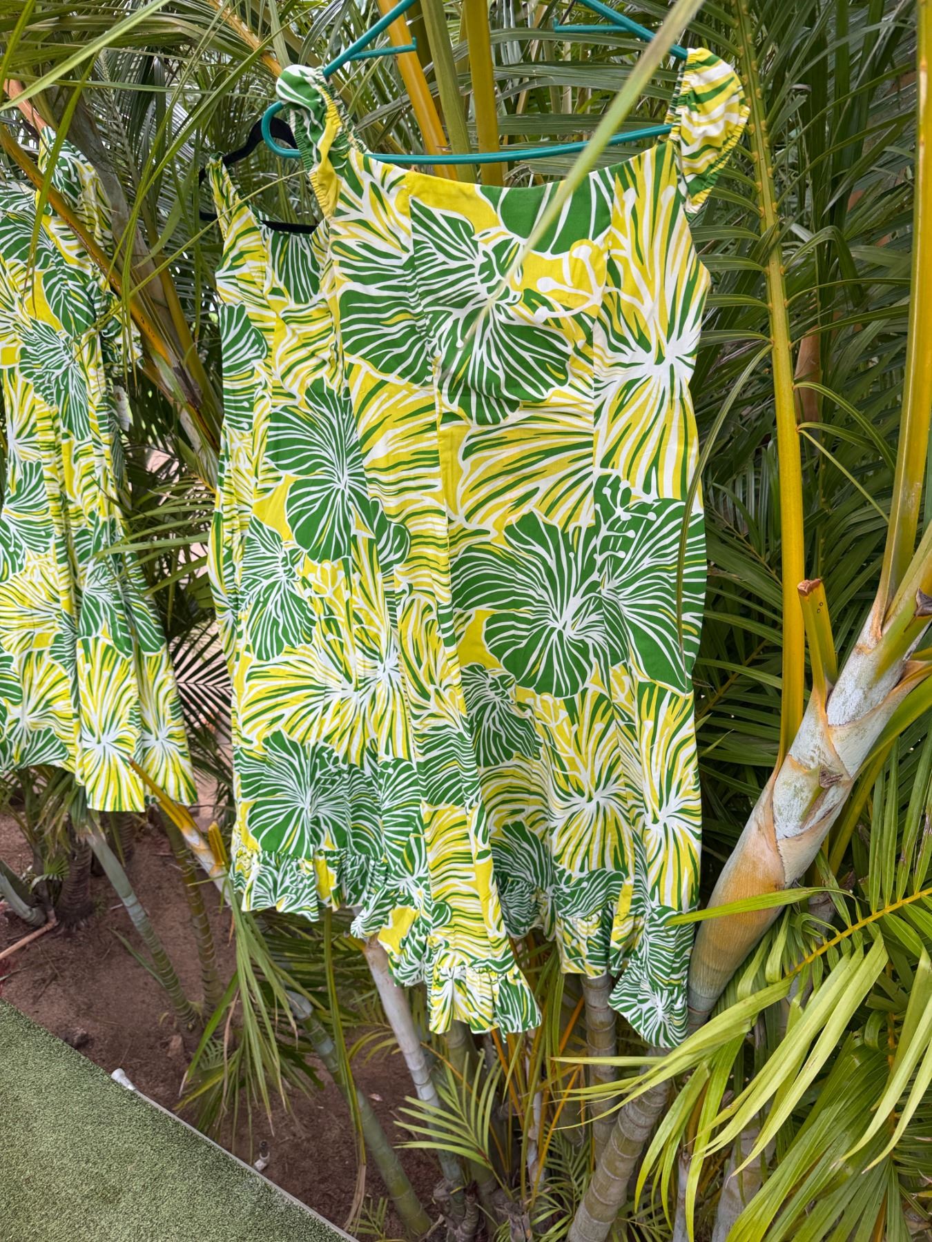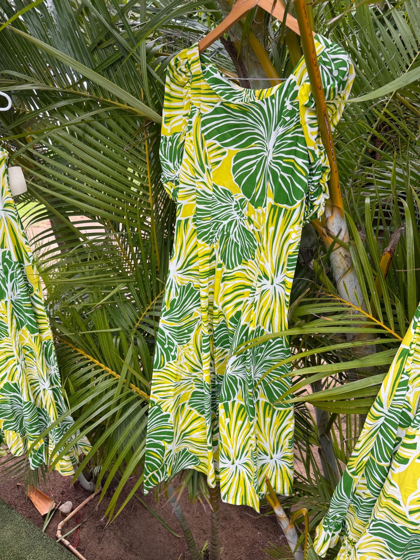 Qty 5 Green Leaf-Print Hawaiian Dresses, Misc Styles & Sizes
