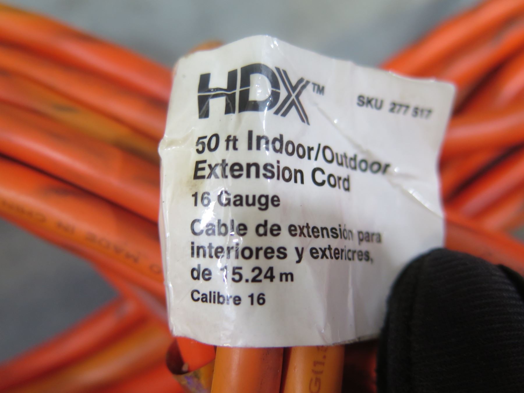 Qty 5 HDX Orange 50' Indoor/Outdoor Extension Cords, 16 Gauge