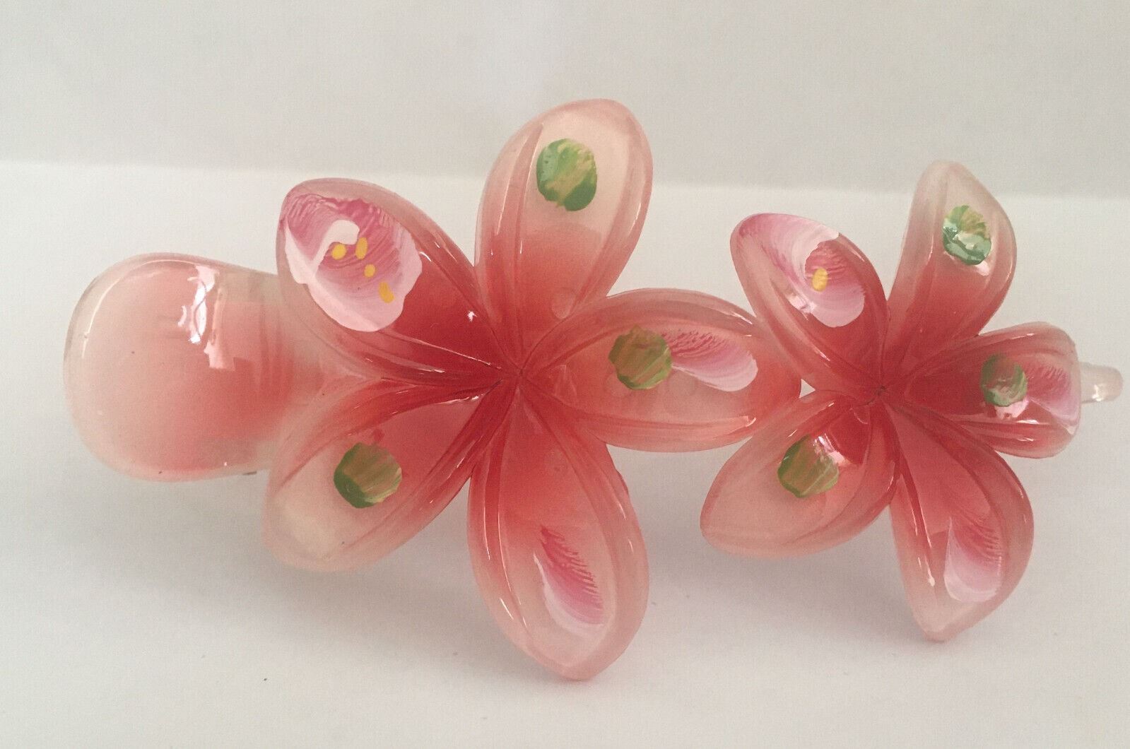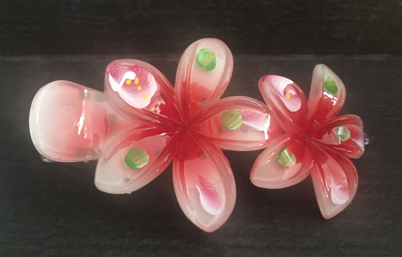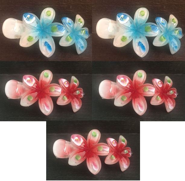 Qty 5 Hard Plastic Large Plumeria Red & Blue Flower Hair Claws Banana Clips (approx. 4"L)