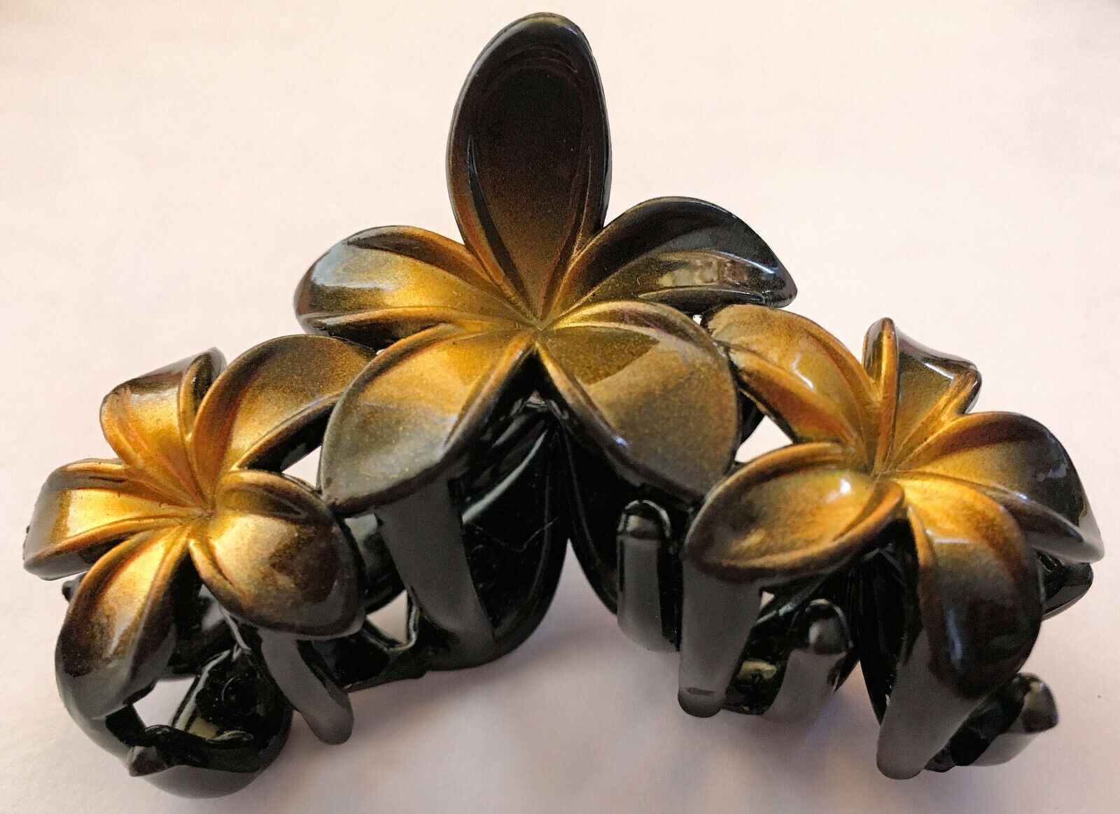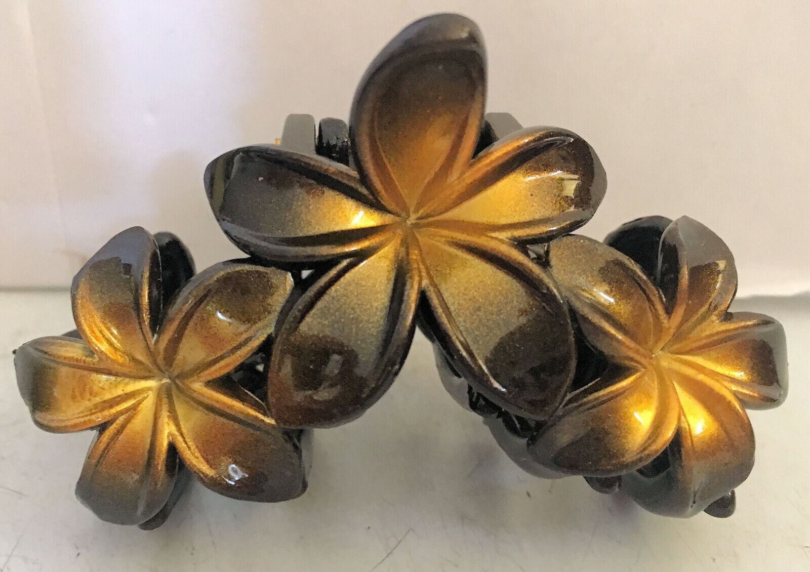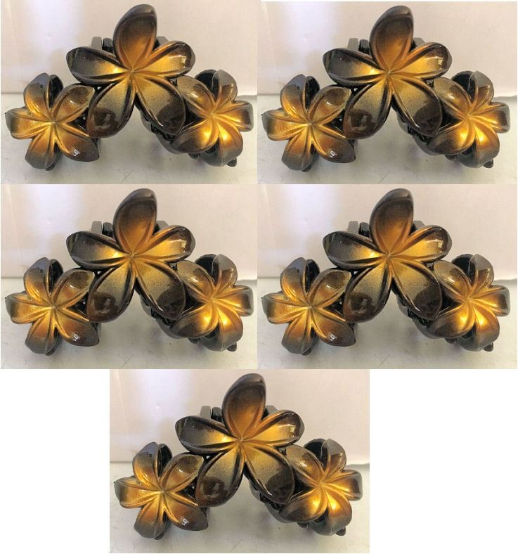 Qty 5 Hard Plastic Medium Plumeria Yellow Triple Flower Hair Claws Clips (approx. 2.75"L)