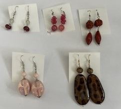 Qty 5 Hook Dangle Stone & Bead Earrings, Misc Sizes, Handcrafted by Local Artisan