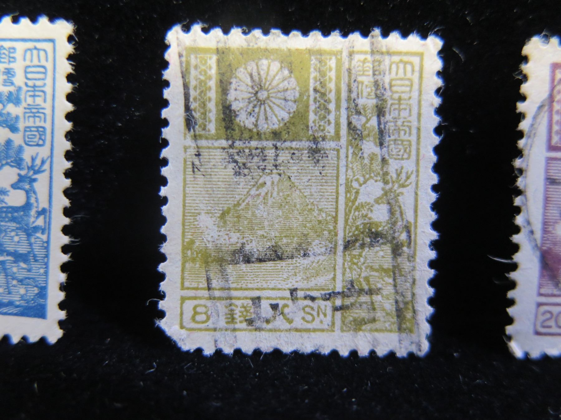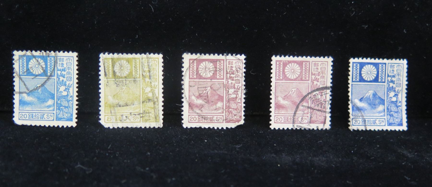 Qty 5 Japan Mt. Fuji Stamps, Misc Denominations