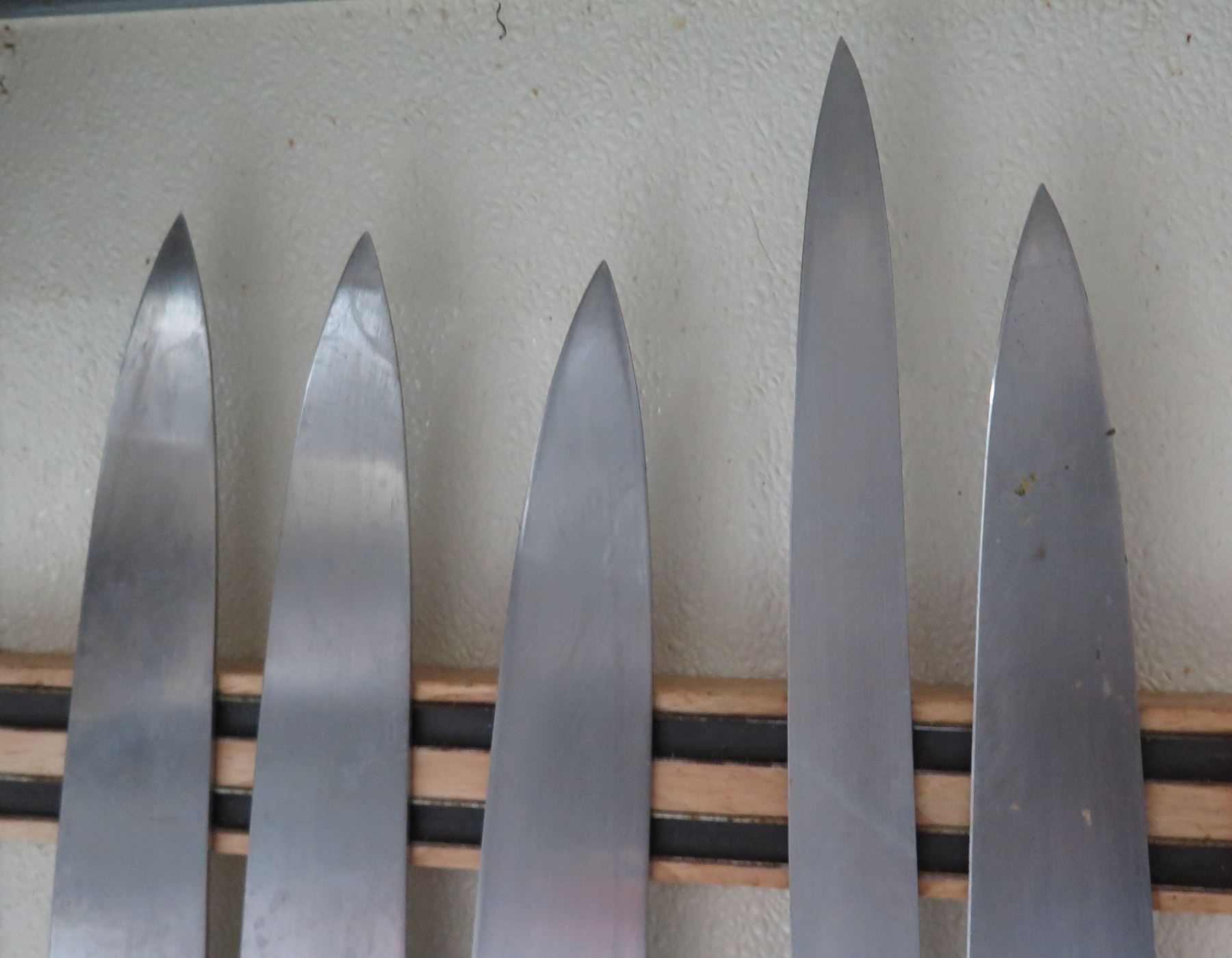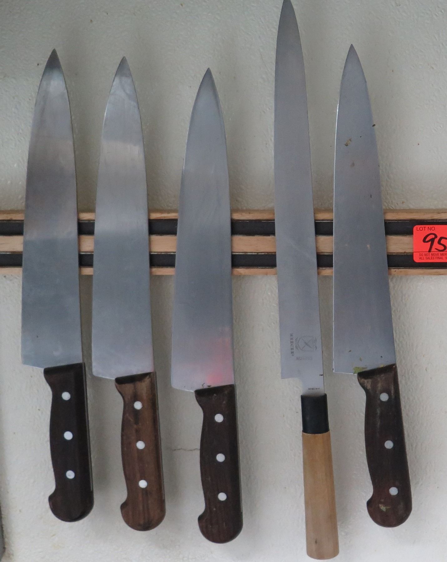 Qty 5 Knives and Magnetic Wall-Mount Knife Holder