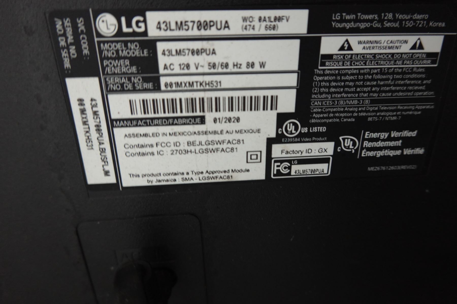 Qty 5 LED TV's: Sony KDL-32S5100, LG 43LM5700PUA, etc