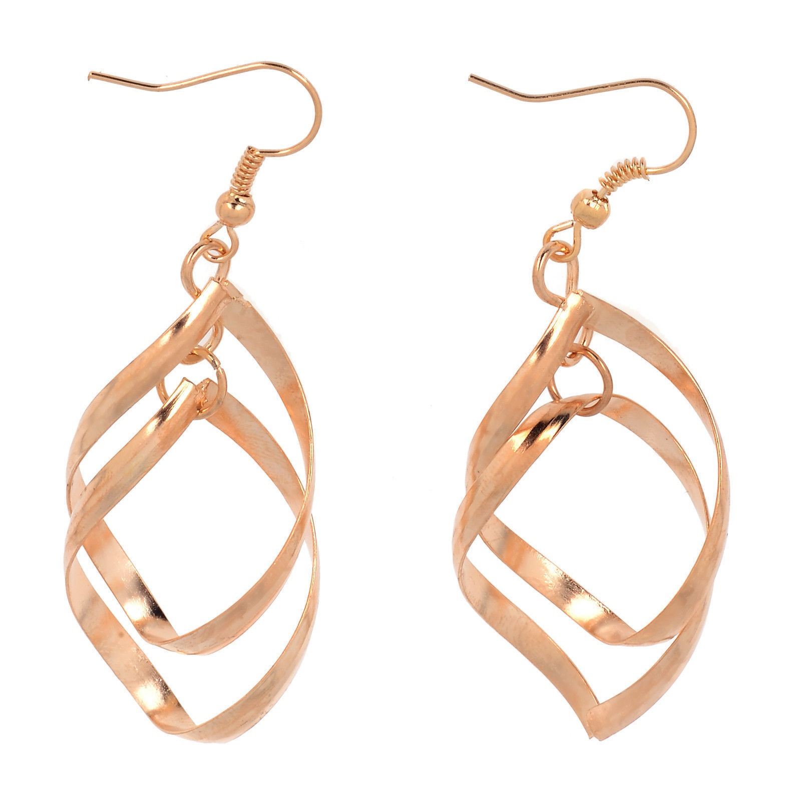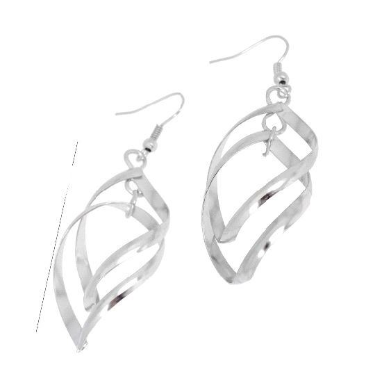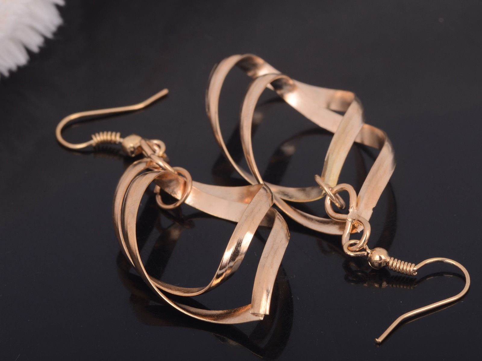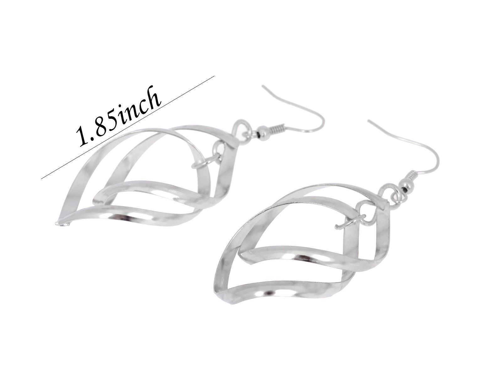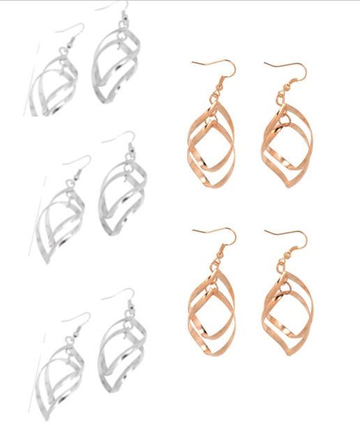 Qty 5 Long Swirls Hook Pierced Dangle Earrings: 2 Gold-Tone, 3 Silver-Tone