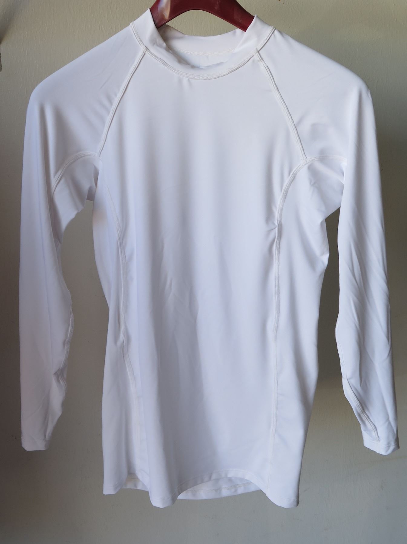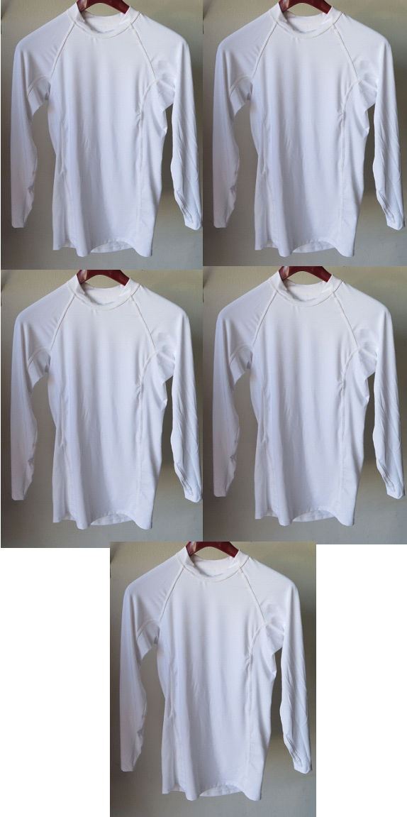 Qty 5 Mens Performance Fit Long Sleeve Lycra UV Tops, White, Size S
