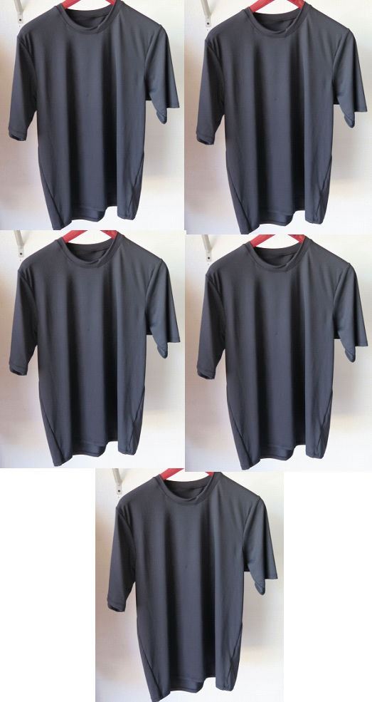 Qty 5 Mens Relaxed Fit Short Sleeve Lycra UV Tops, Black, Size 3XL