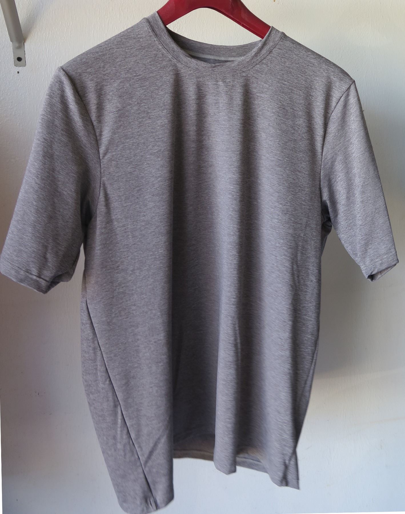 Qty 5 Mens Relaxed Fit Short Sleeve Lycra UV Tops, Heather Grey, Size XL