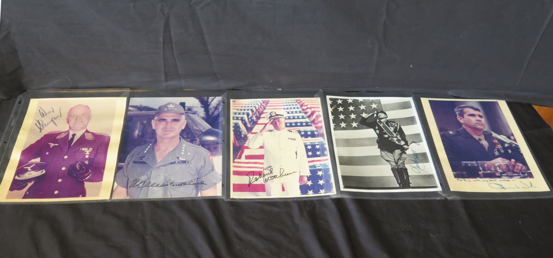 Qty 5 Military Photos: Oliver North, Robert Mitcham & Others, Some Signed