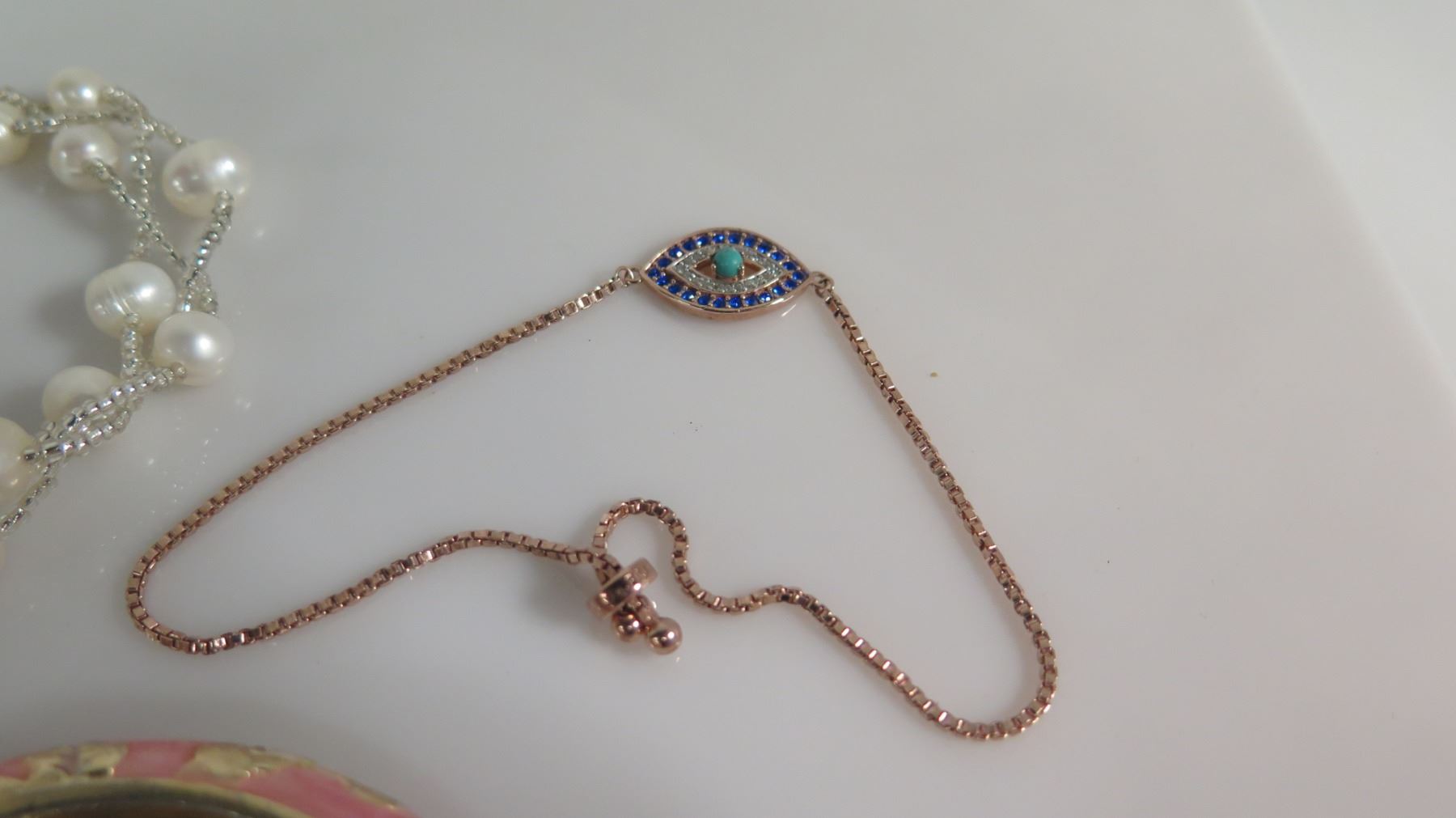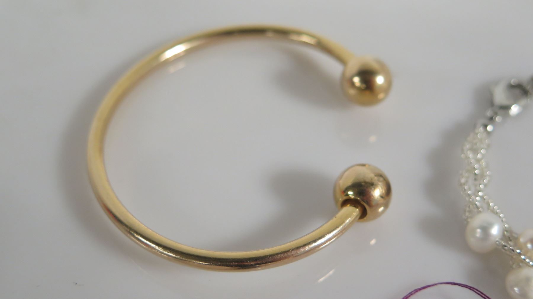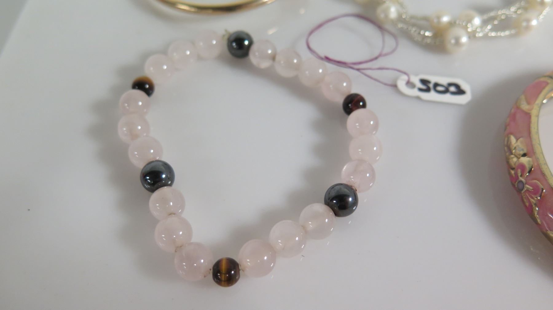 Qty 5 Misc Bracelets - Silver Pearl, Pink Enamel, Beaded, Bangle & Chain