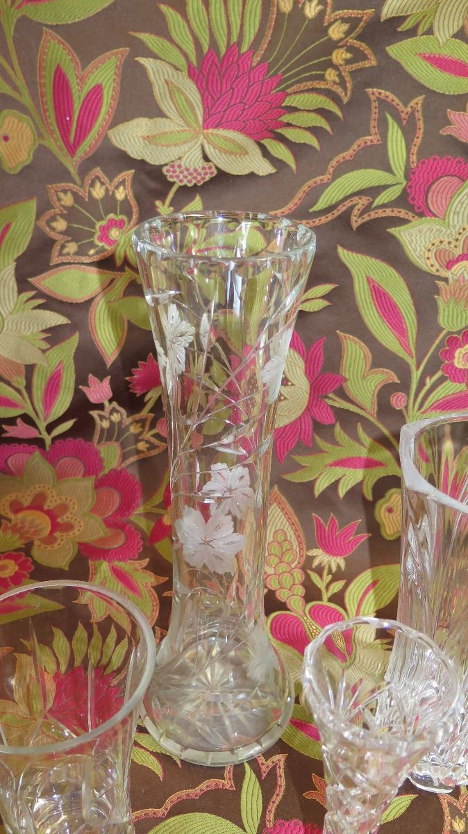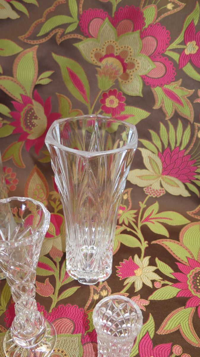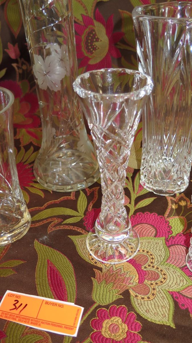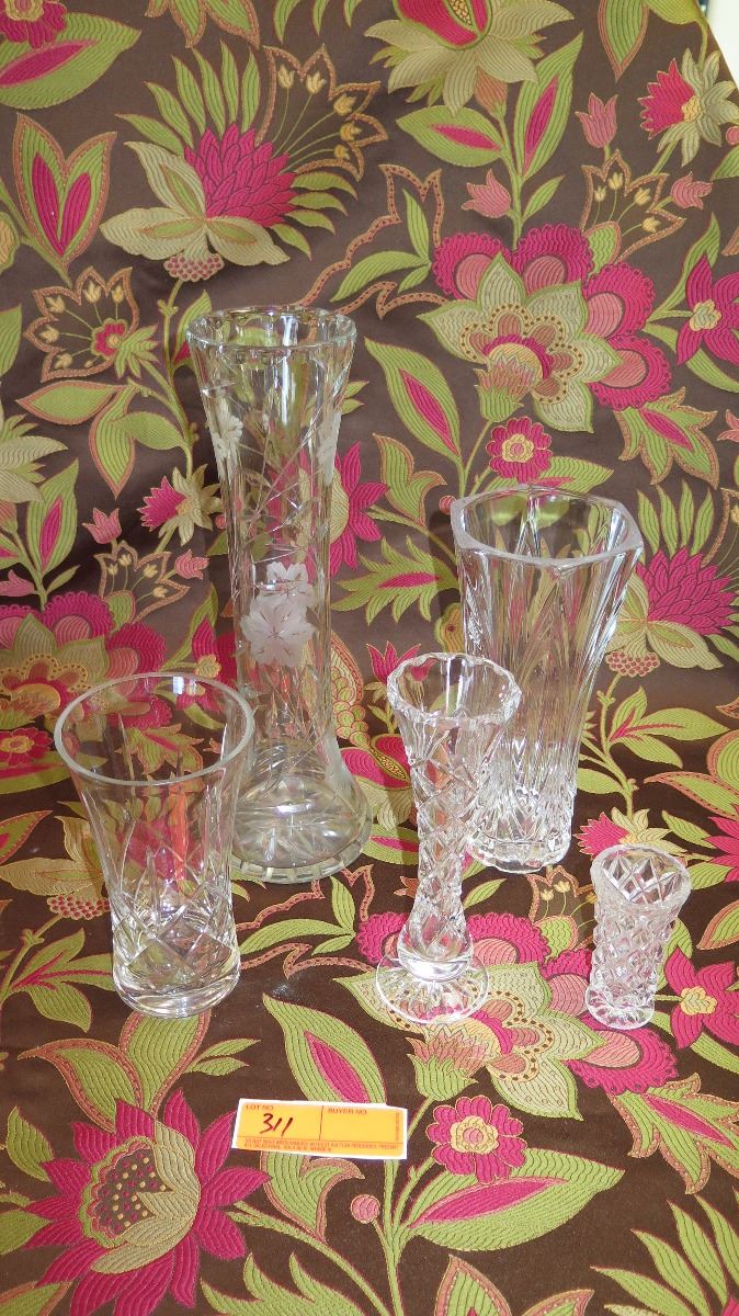 Qty 5 Narrow Cut Crystal Vases - Approx. 4" to 14" H