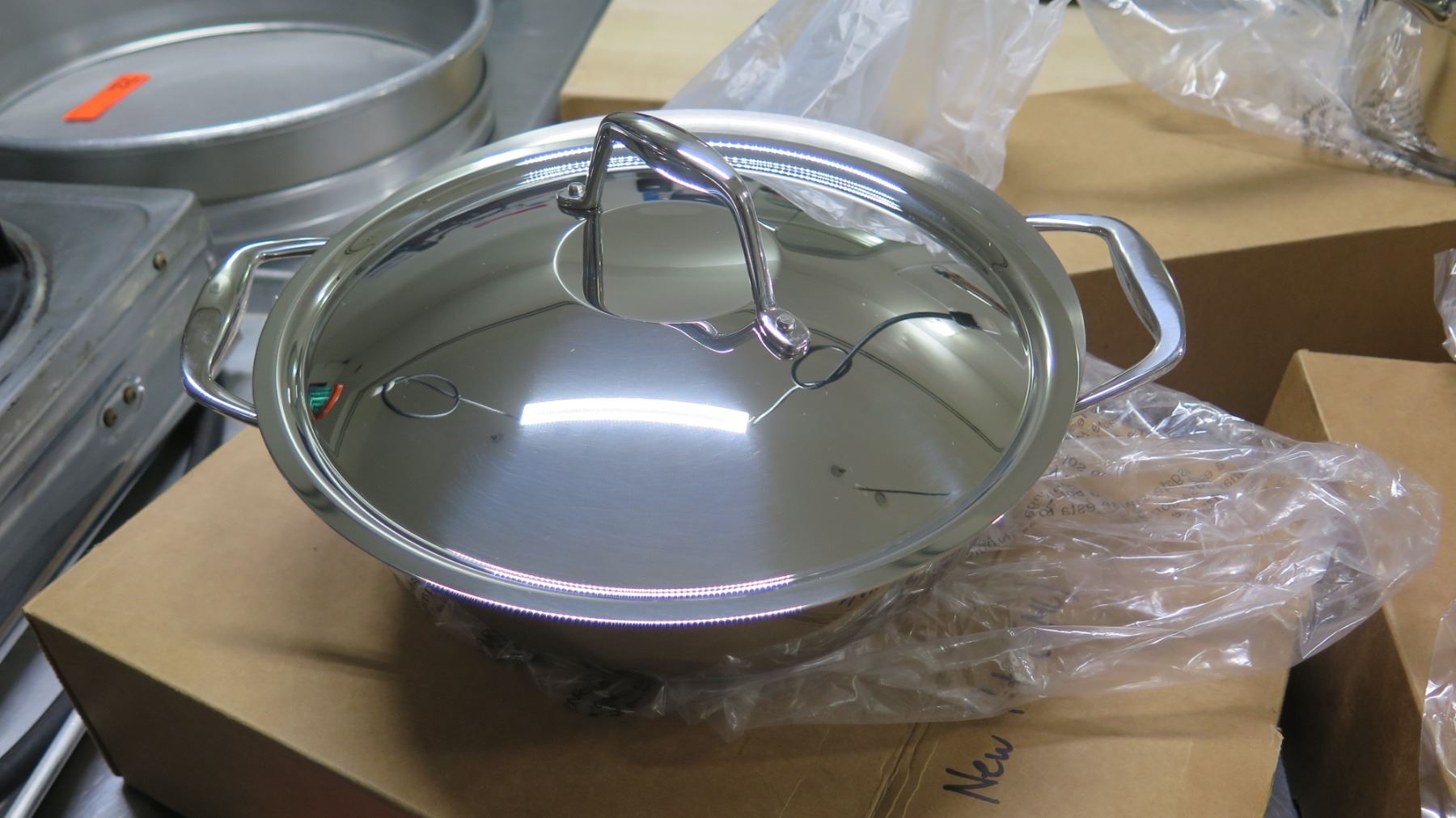 Qty 5 New Pots Pans in Boxes w/ Scale & Misc