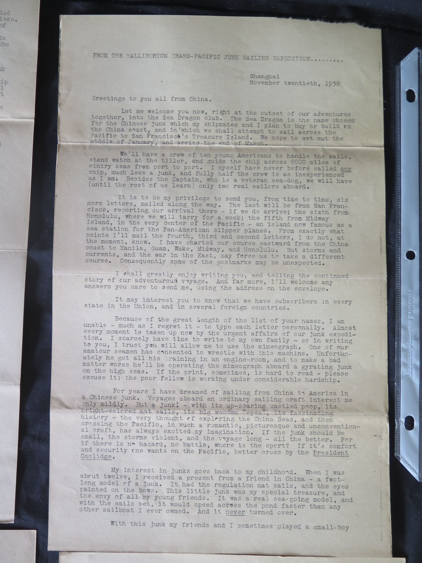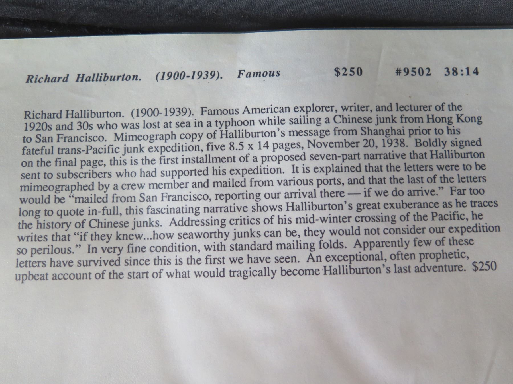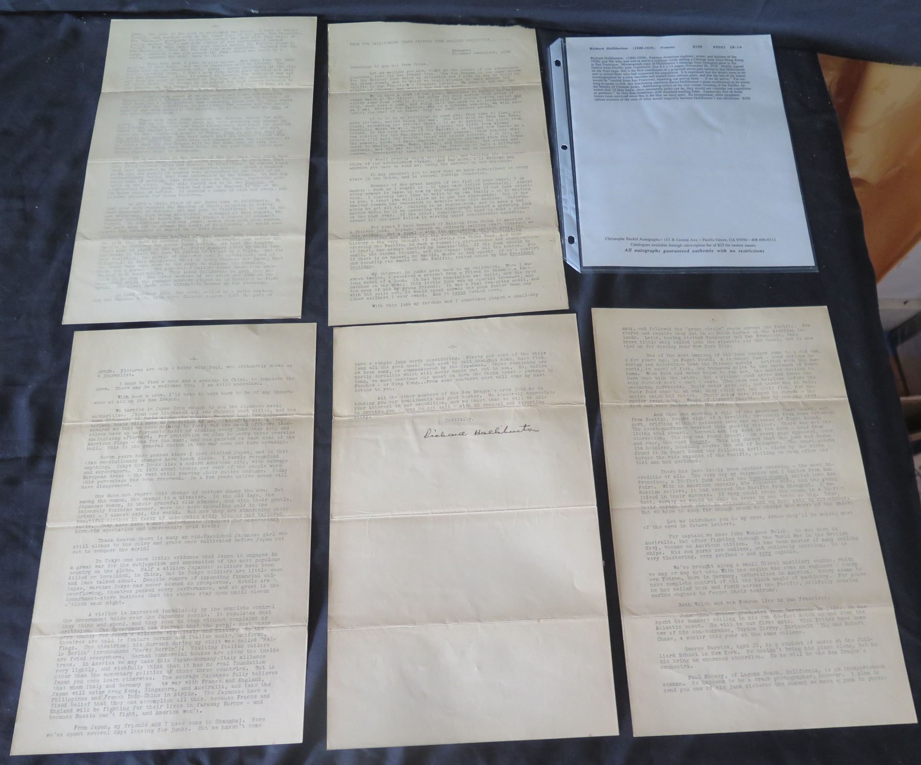 Qty 5 Pages Mimeographed Copies of Richard Halliburton Message from Shanghai w/ Bio
