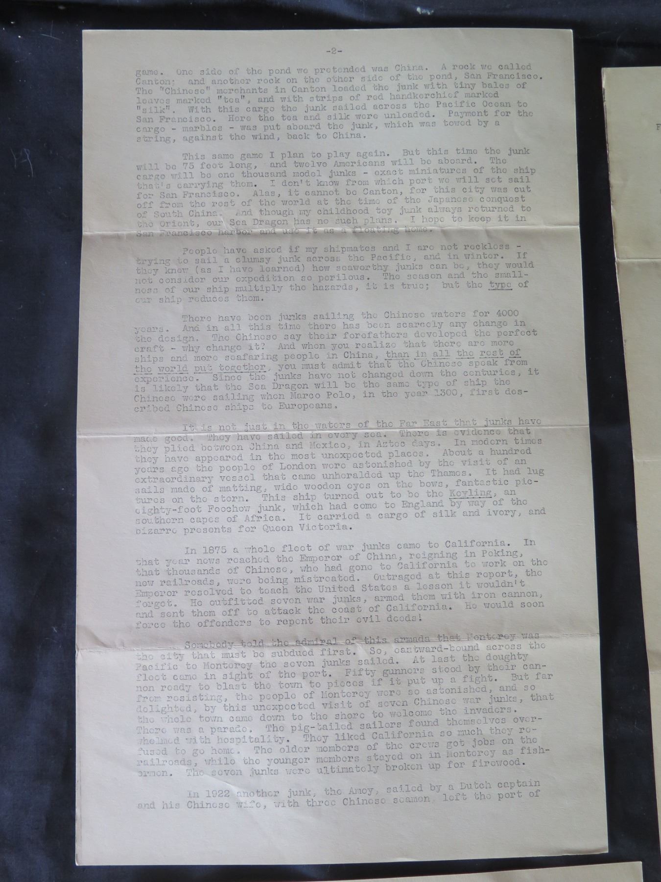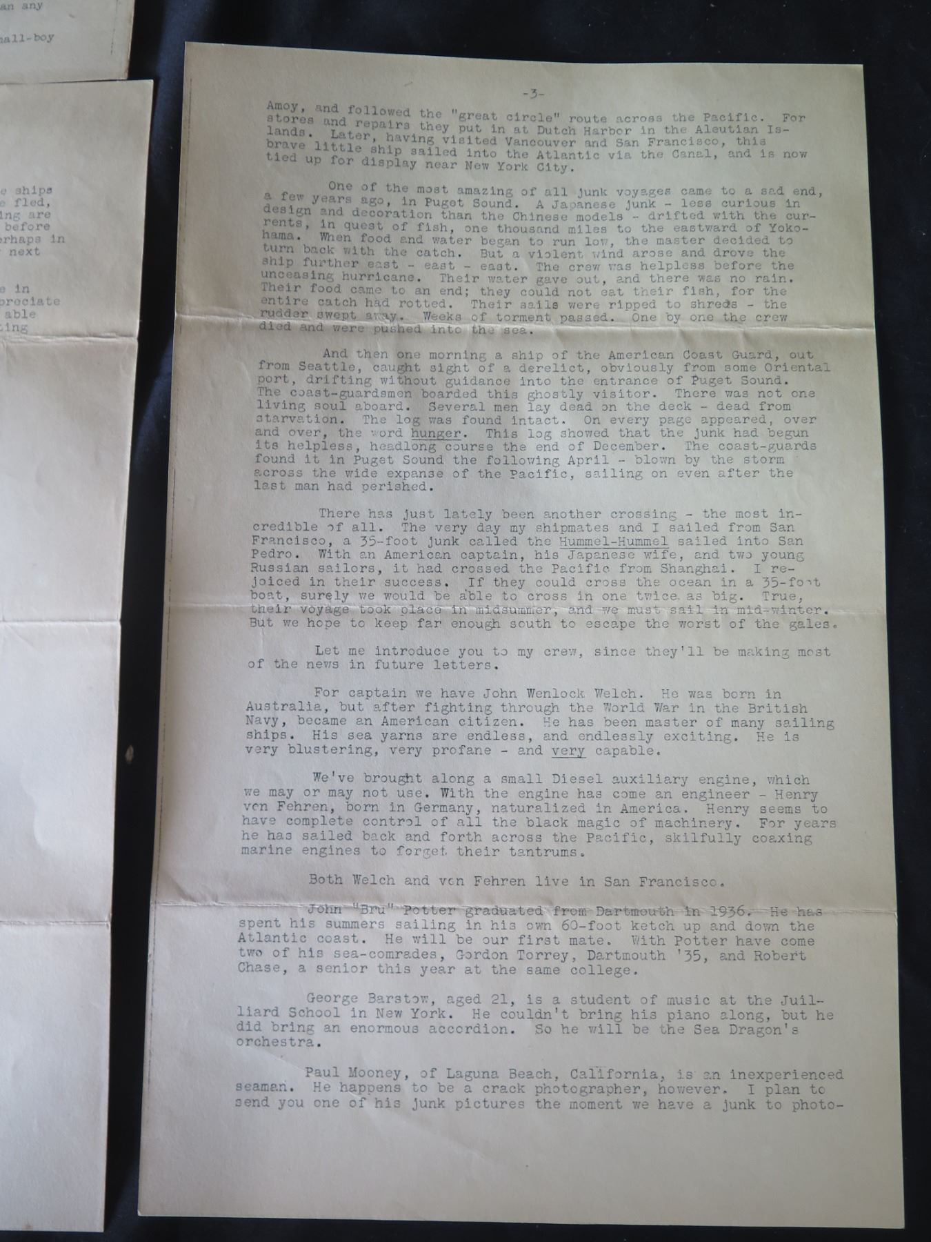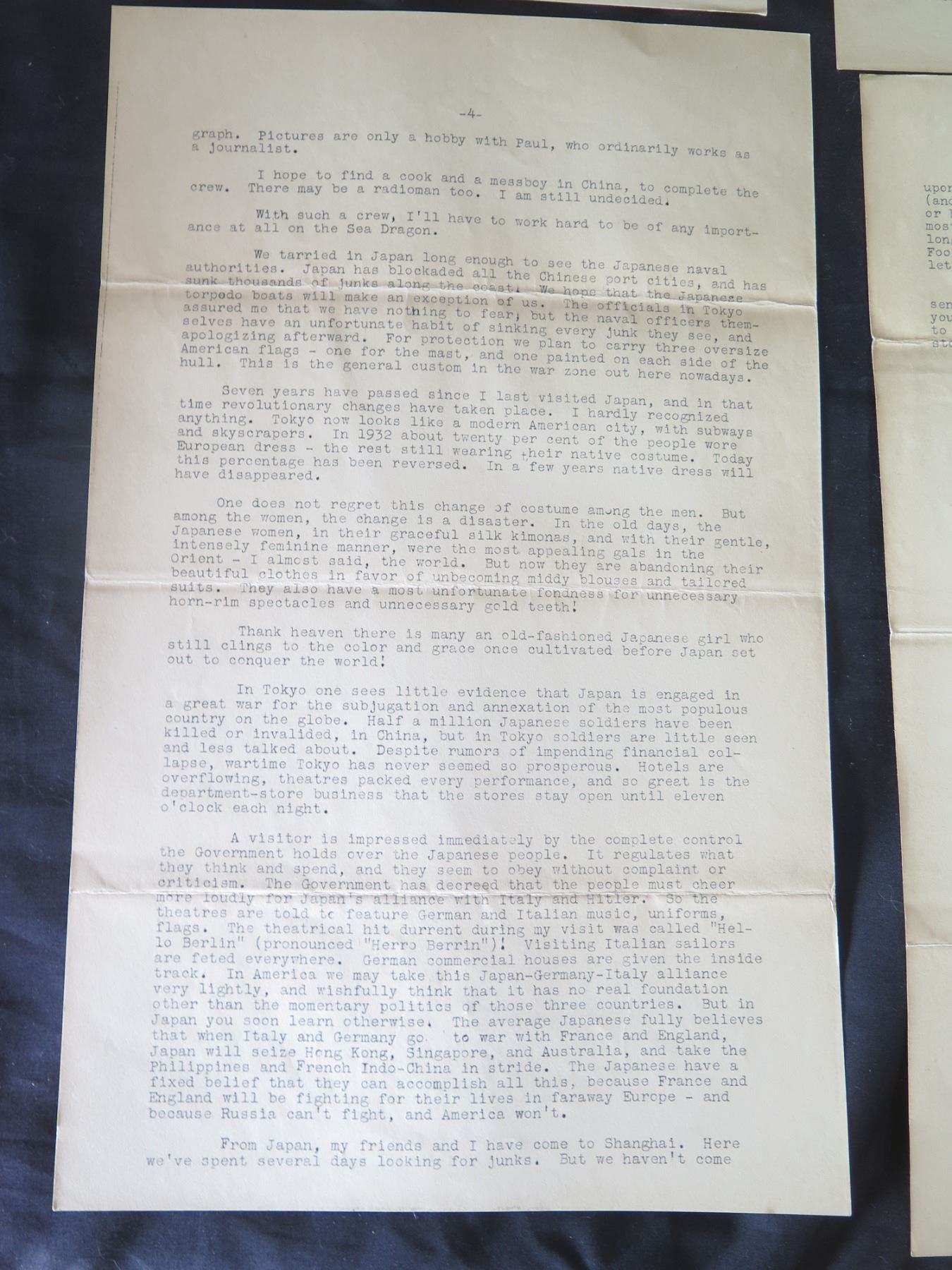 Qty 5 Pages Mimeographed Copies of Richard Halliburton Message from Shanghai w/ Bio