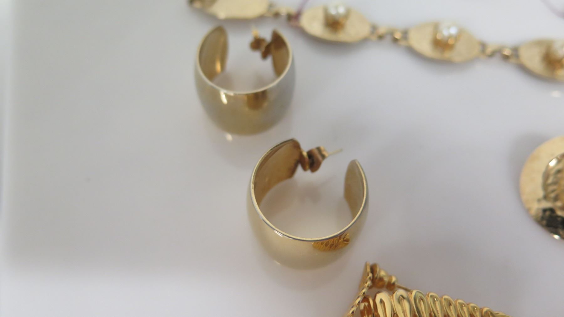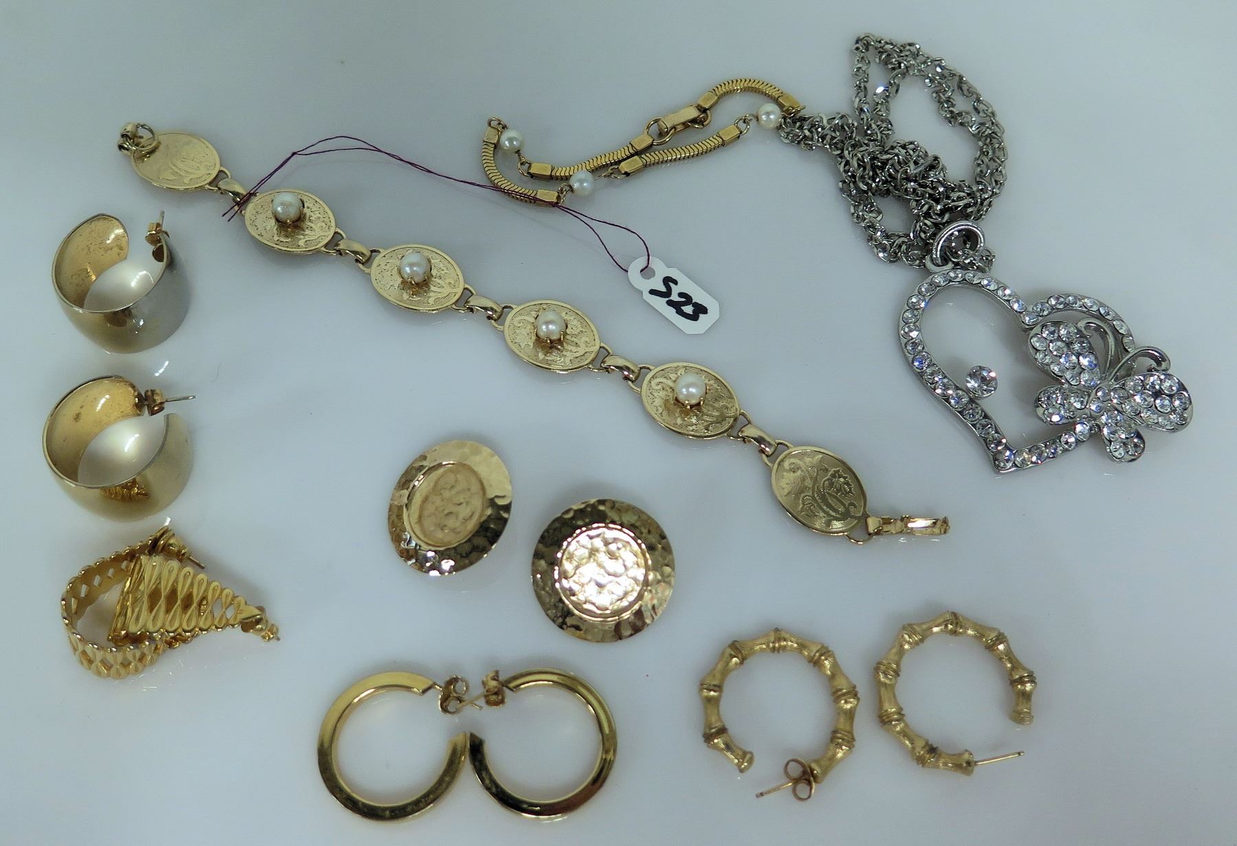 Qty 5 Pair Gold Tone & Copper Earrings, 2 Bracelets, Heart Crystal Necklace, etc