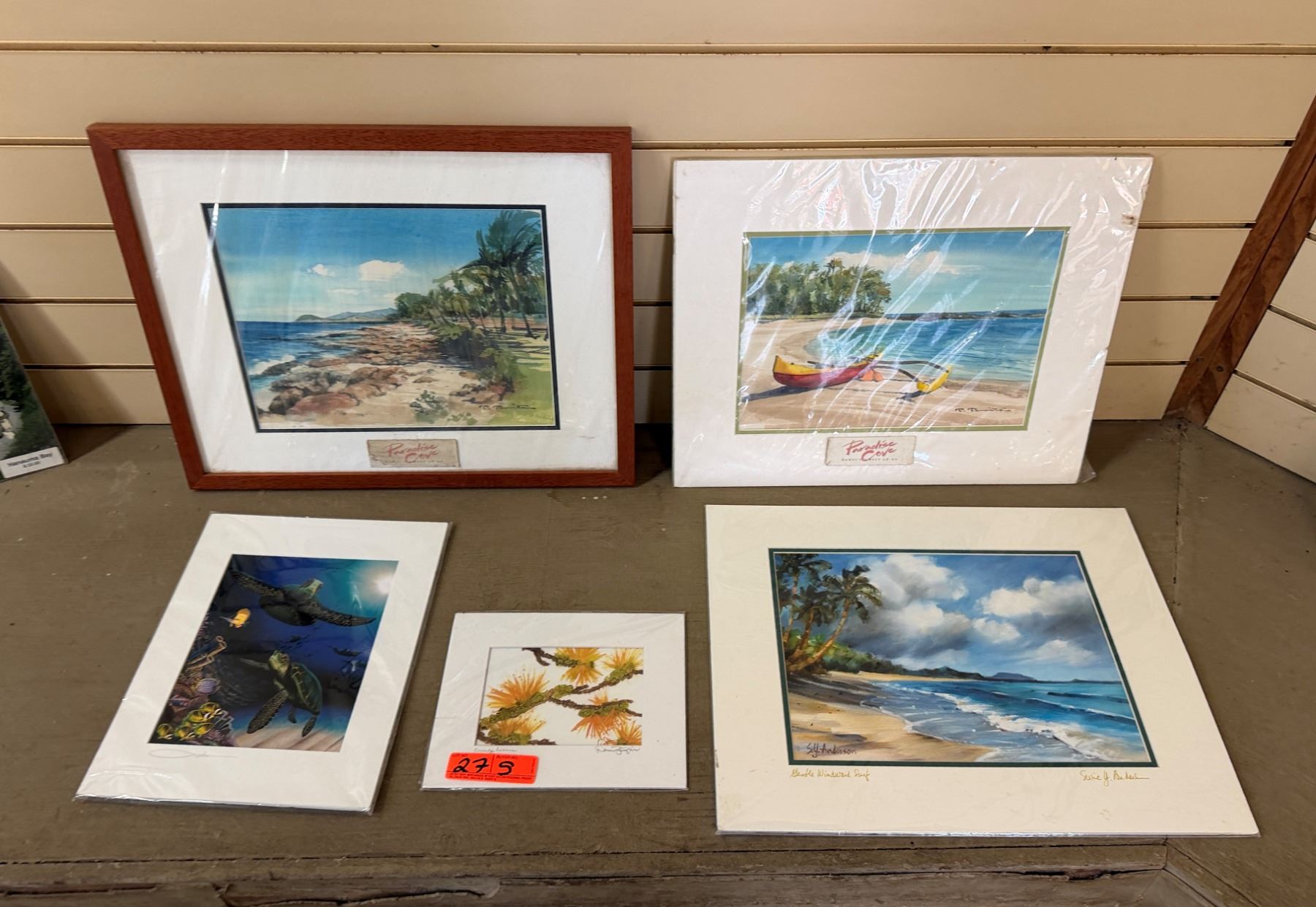 Qty 5 Paradise Cove & Hawaii Artworks, Matted (1 Framed), Misc Sizes