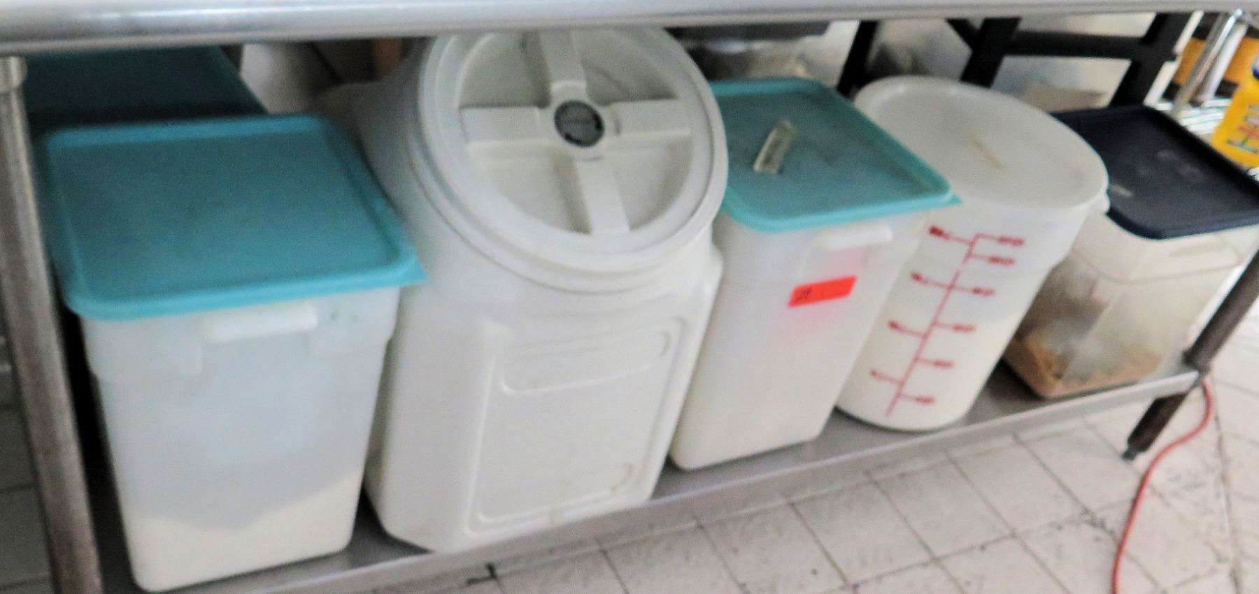 Qty 5 Plastic Lidded Container Bins