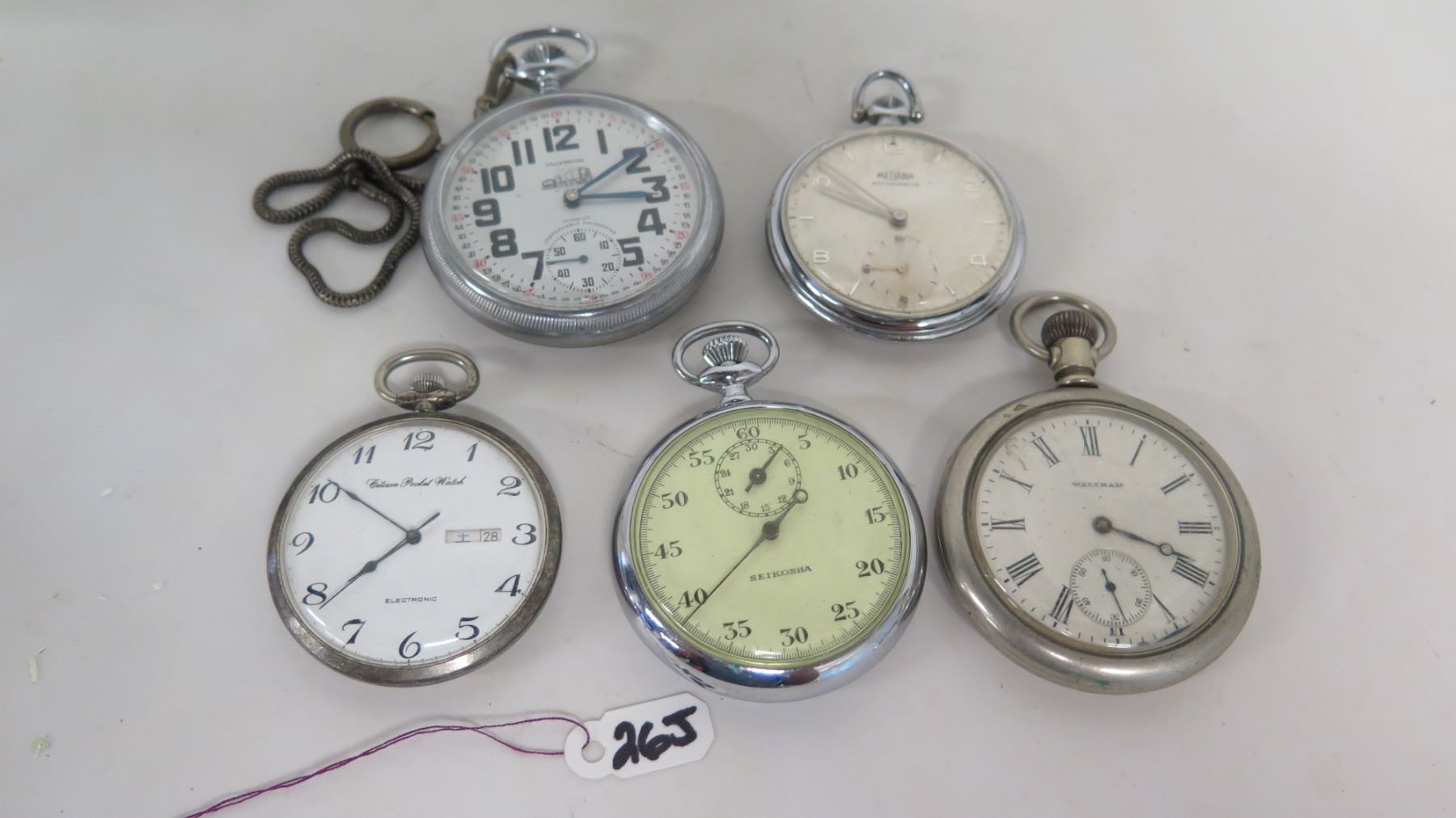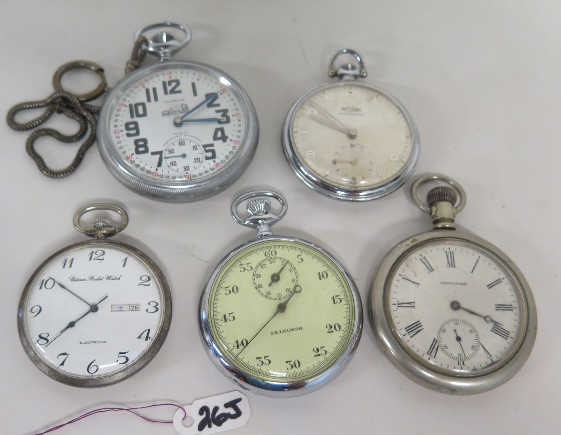 Qty 5 Pocket Watches - Citizen, Seikosha, Waltham, Villaruse & Medana