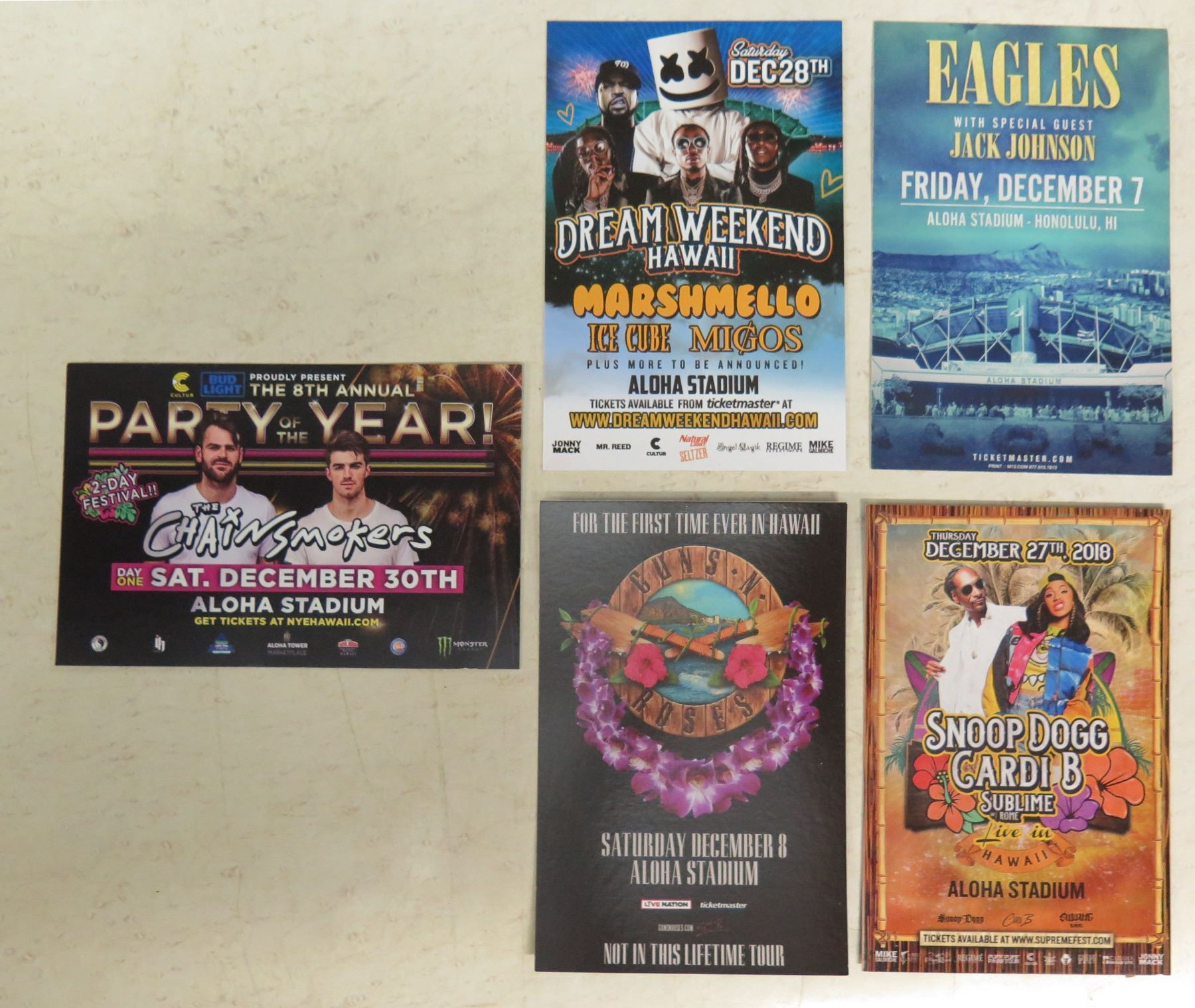 Qty 5 Promo Cards: Eagles, Snoop Dogg, Ice Cube, Guns & Roses, Chain Smokers 6"x4"